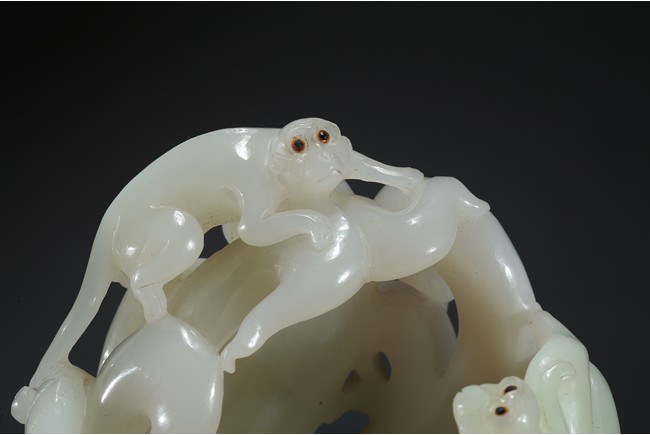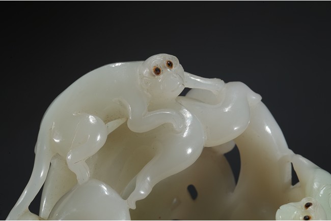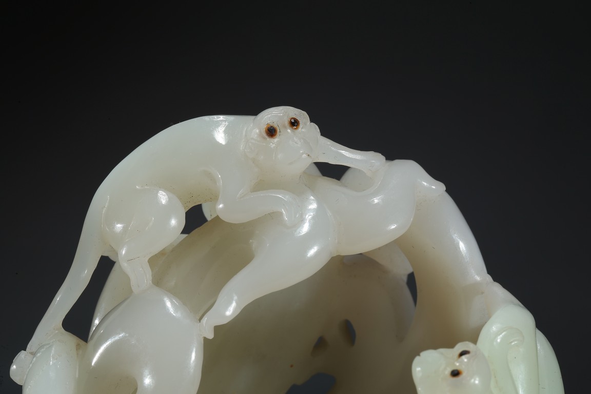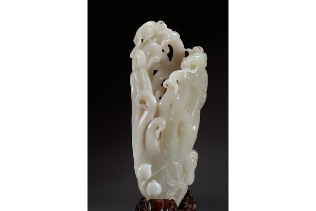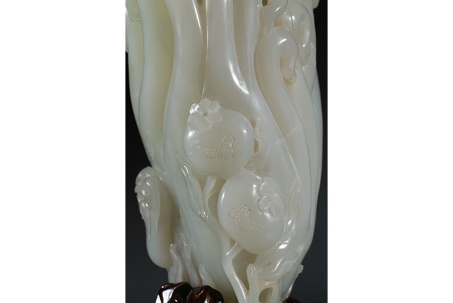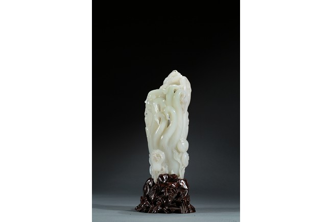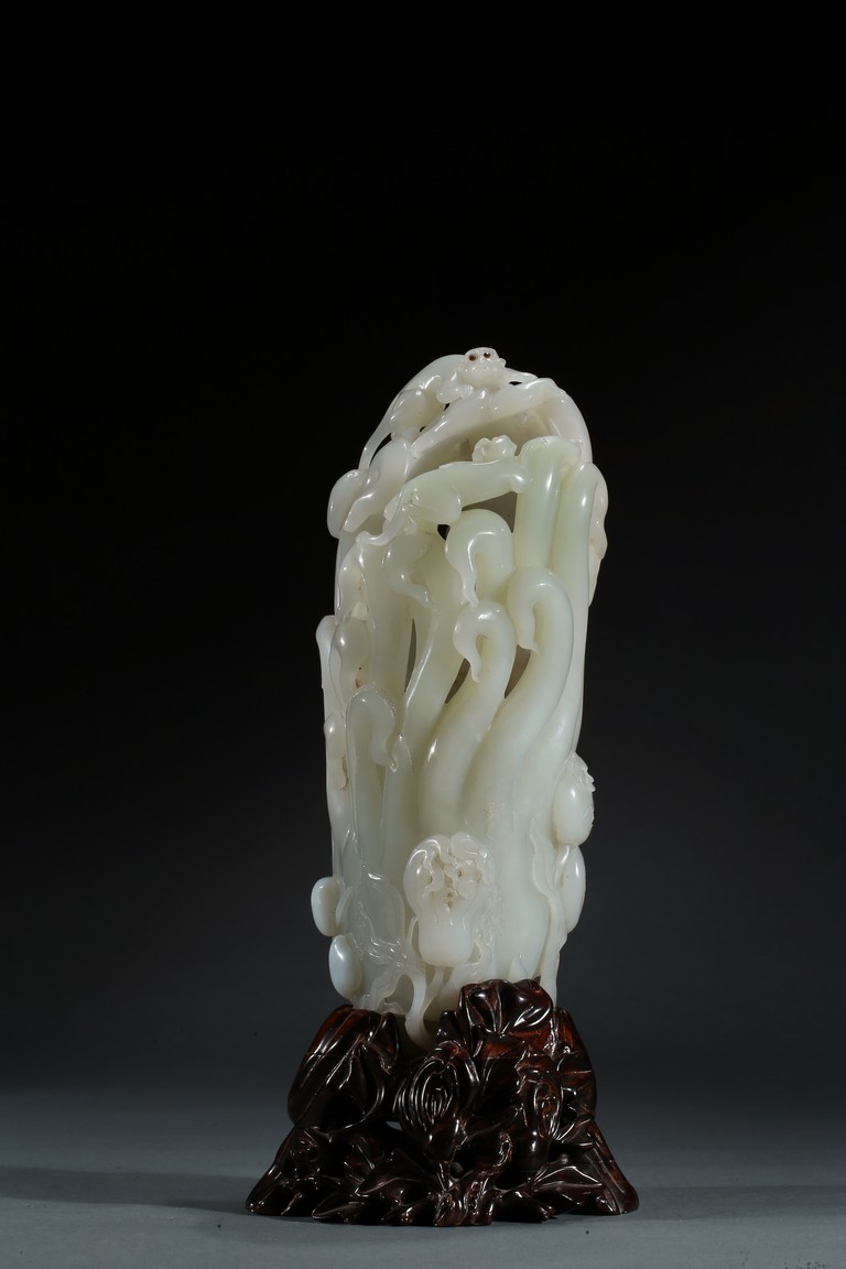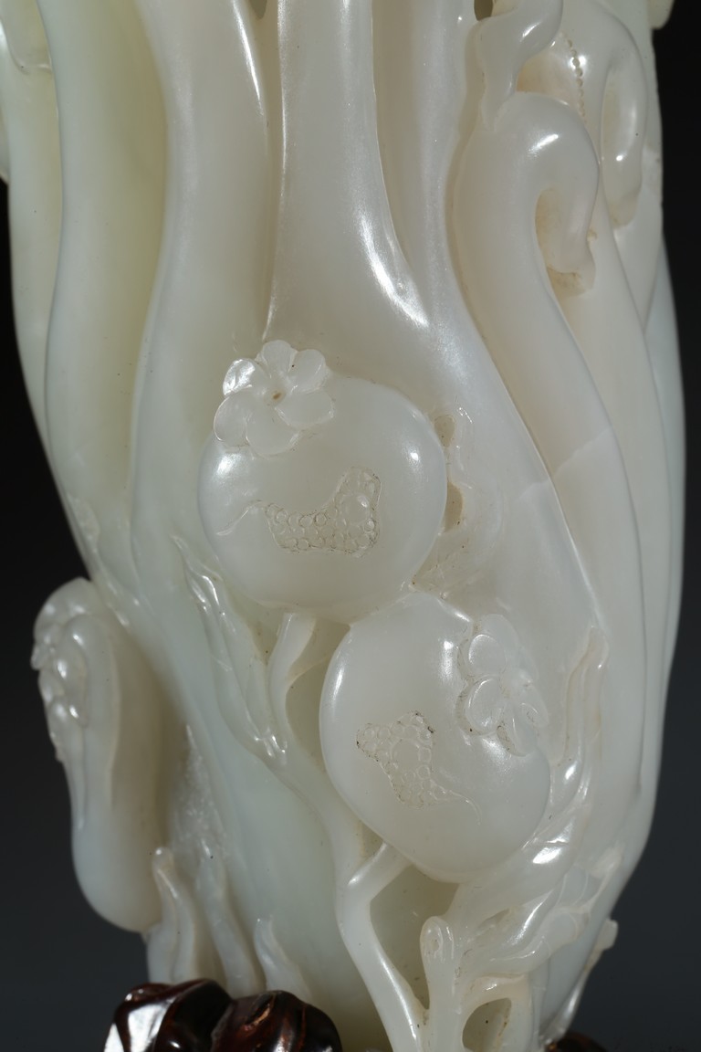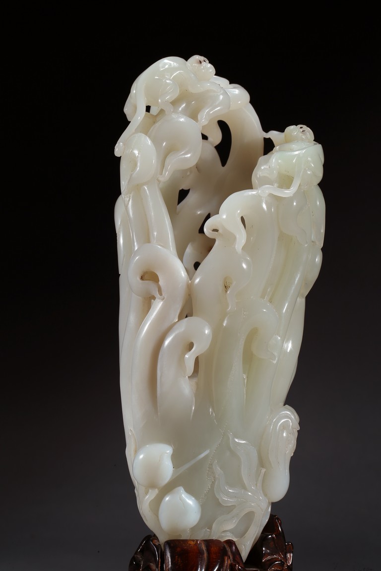 Please refer to a similar white jade carved finger-citron, sold in Christie's New York on March 19, 2008, Lot 451. 可參考一類似白玉雕壽桃佛手,售於紐約佳士得2008年3月19日,拍品號451。