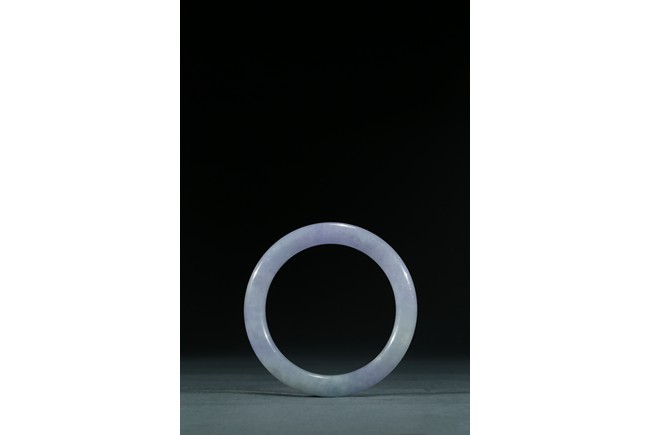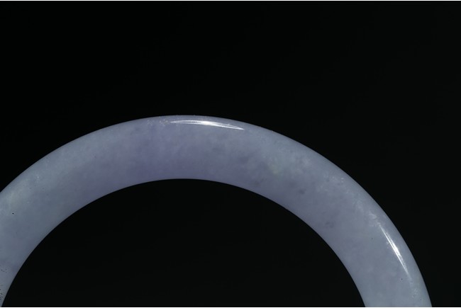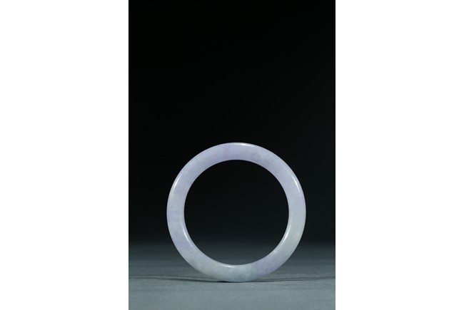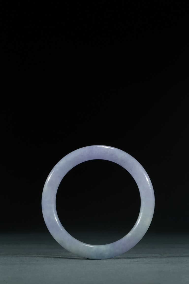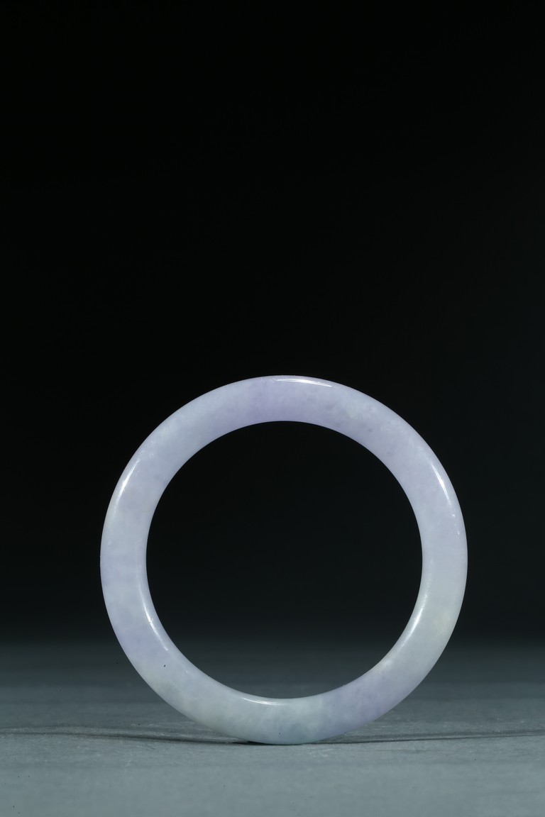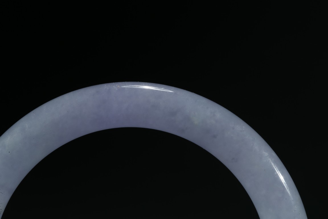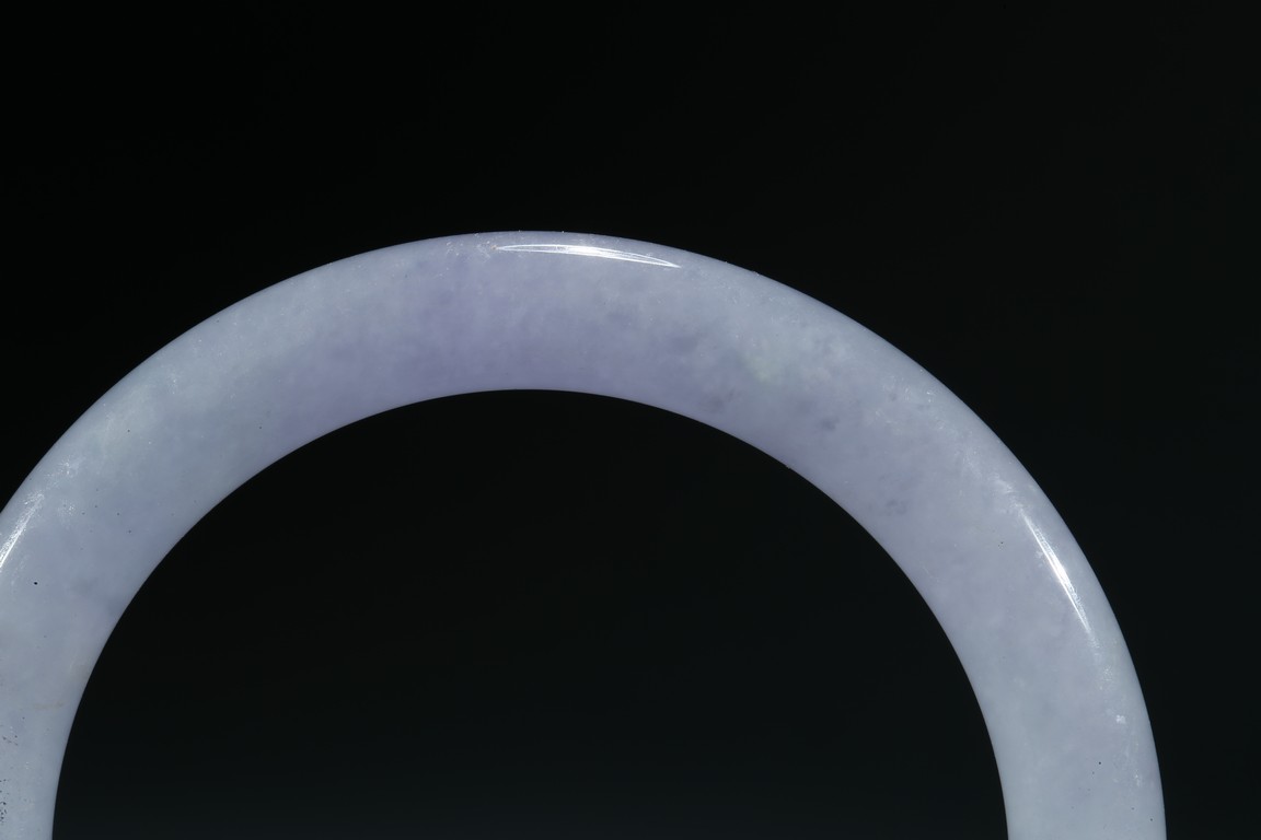 The translucent jadeite bangle nearly of lavender tone, with light grey and translucent white tones.