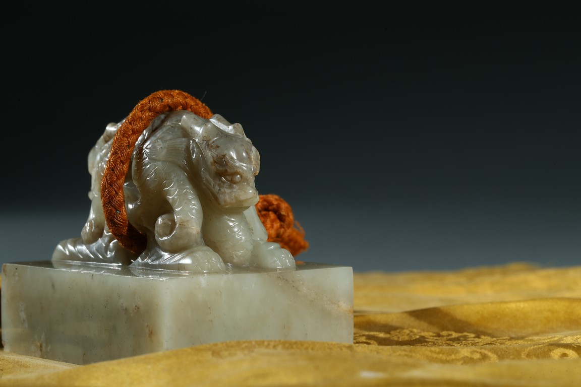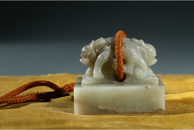 Please refer to a similar imperial celadon jade 'double-dragon' seal, sold in Sotheby's New York on September 13, 2016, Lot 185. 可參考一類似玉雕宮廷雙龍玉璽,售於紐約蘇富比2016年9月13,拍品號185。