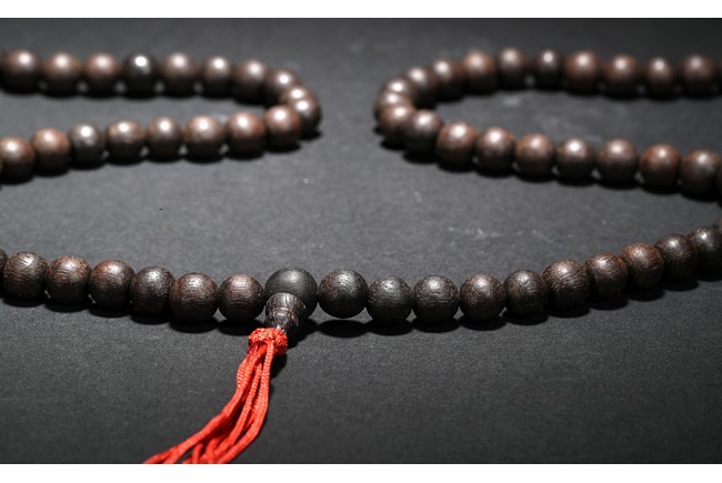 Comprising of 108 agarwood beads, all of round bead shape and in similar size.