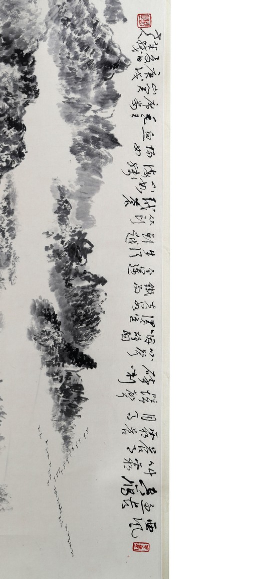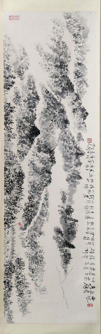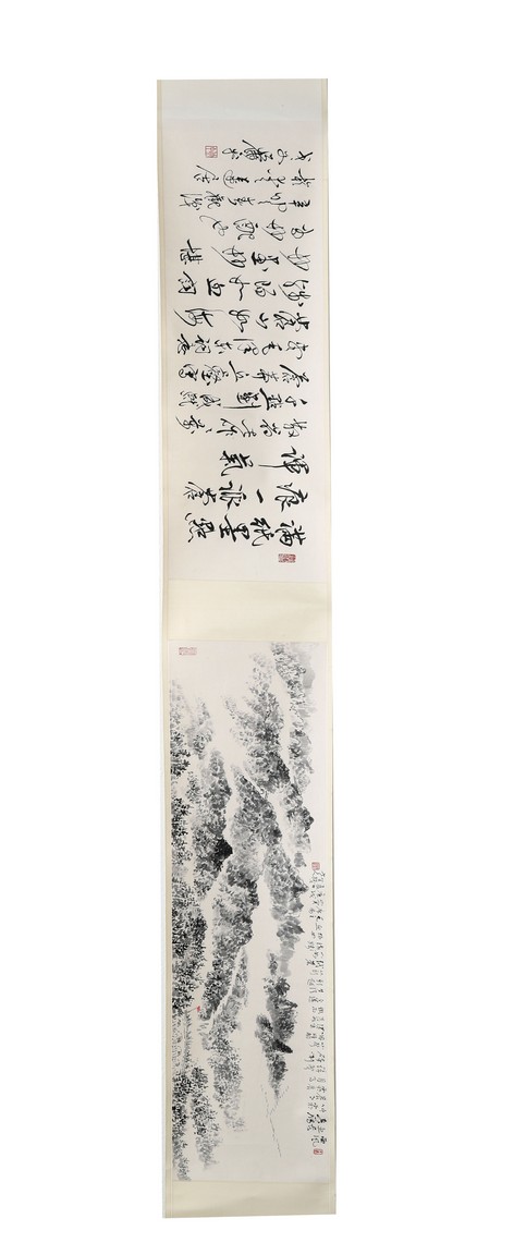 Ink on paper. Landscape. Inscribed and signed 'Ban Can Lao Ren', with three seals of the artist. Frontispiece signed Lin Xiaozhi, with two seals of the artist.