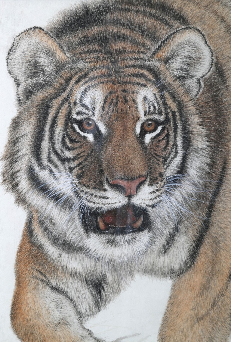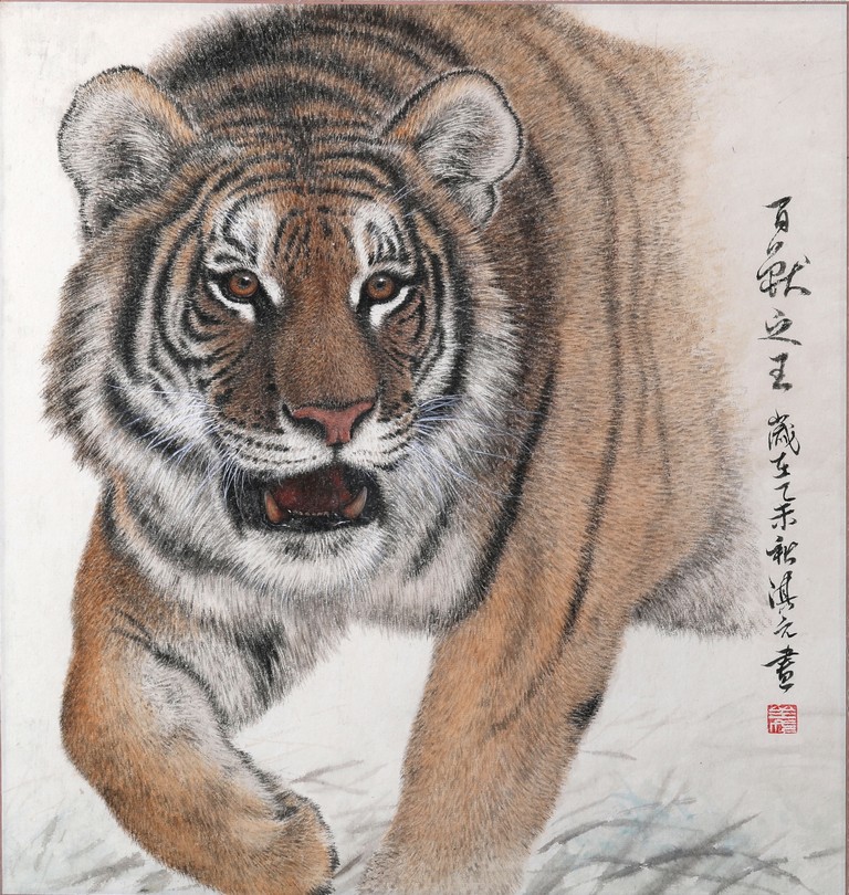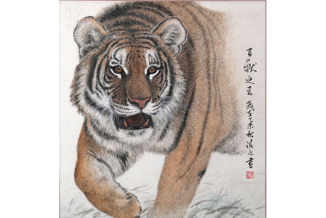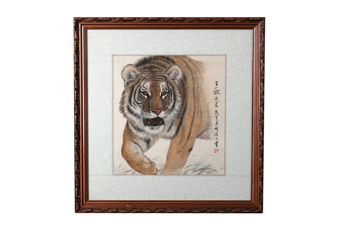 A COLOR AND INK ON PAPER 'TIGER' PAINTING 老虎圖 設色紙本 鏡框