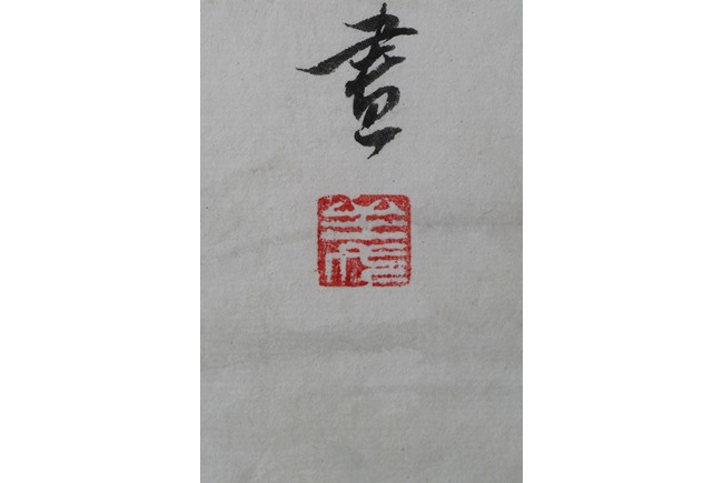 Color and ink on paper. Framed. Signed and with one seal of the artist.