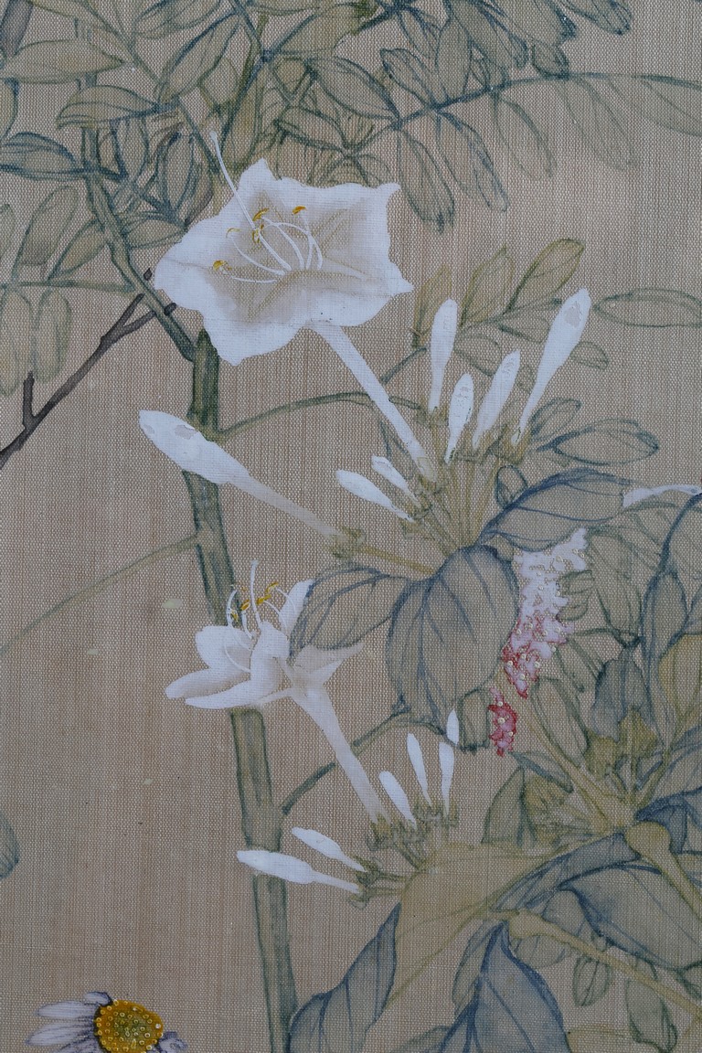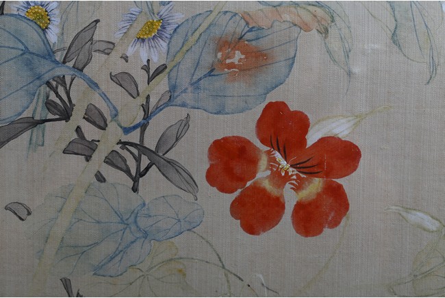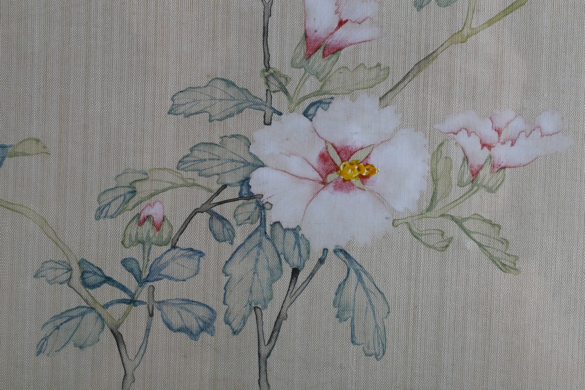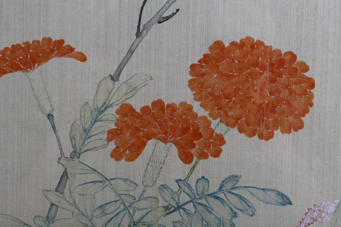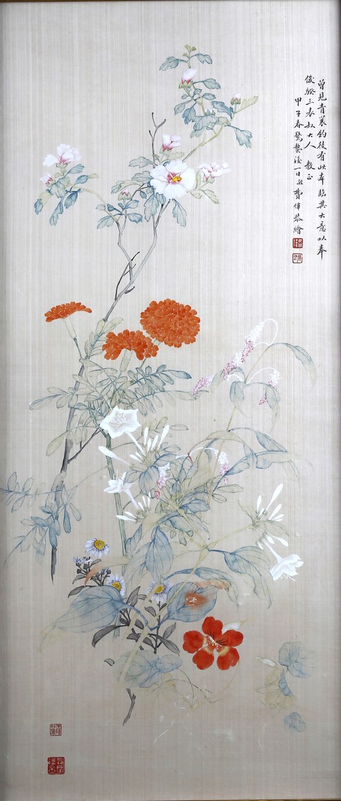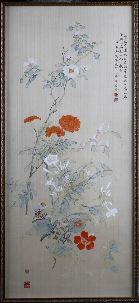 FEI WEI: COLOR AND INK ON SILK 'FLOWERS' PAINTING 費偉 花卉 絹本 鏡心