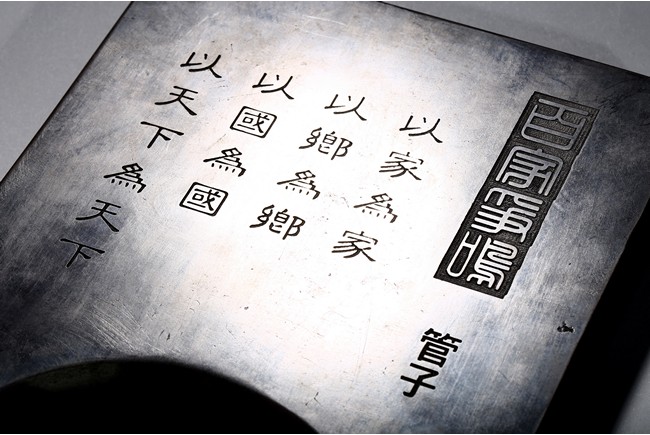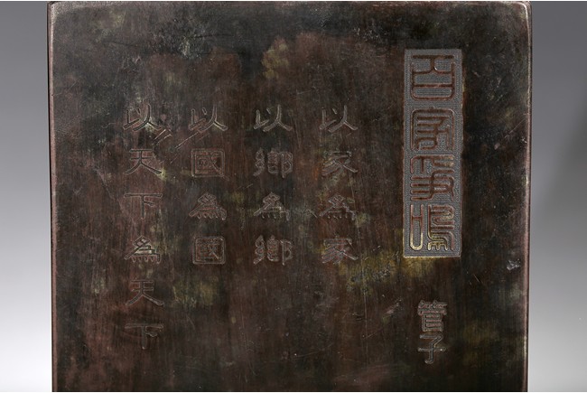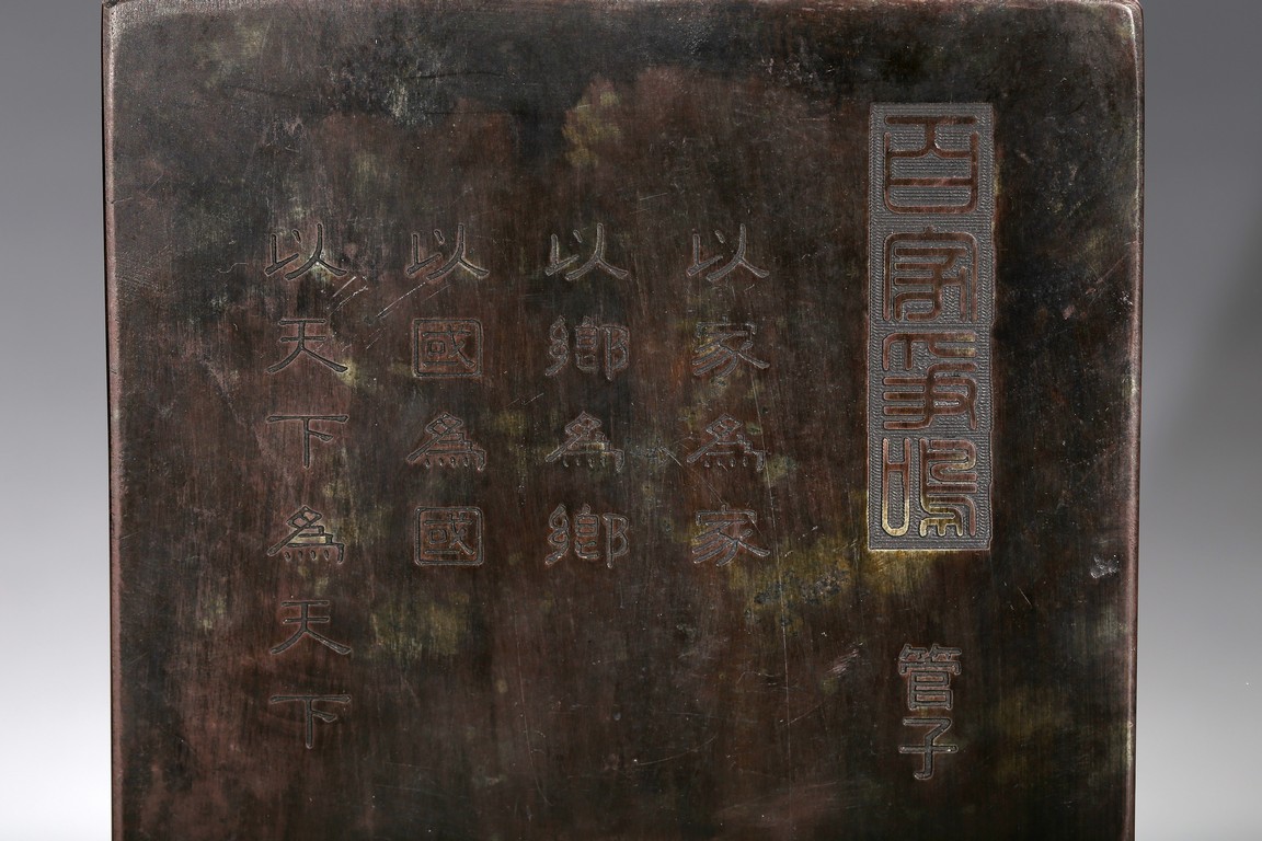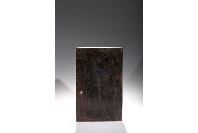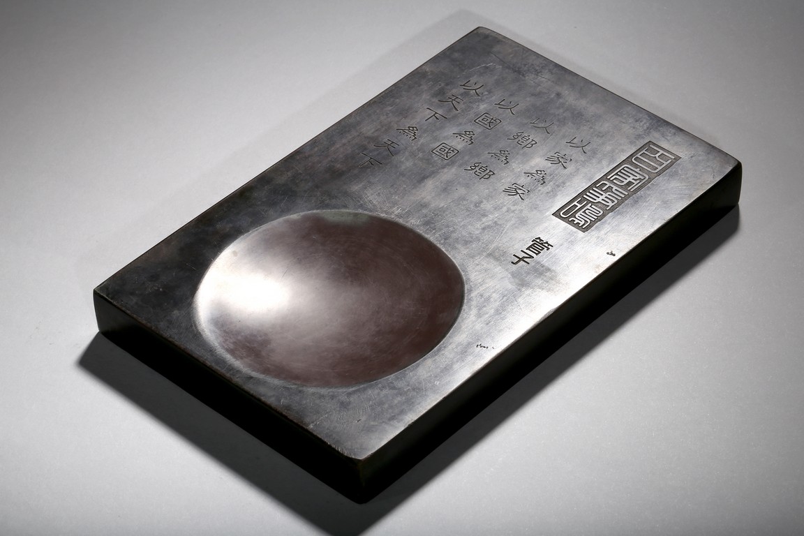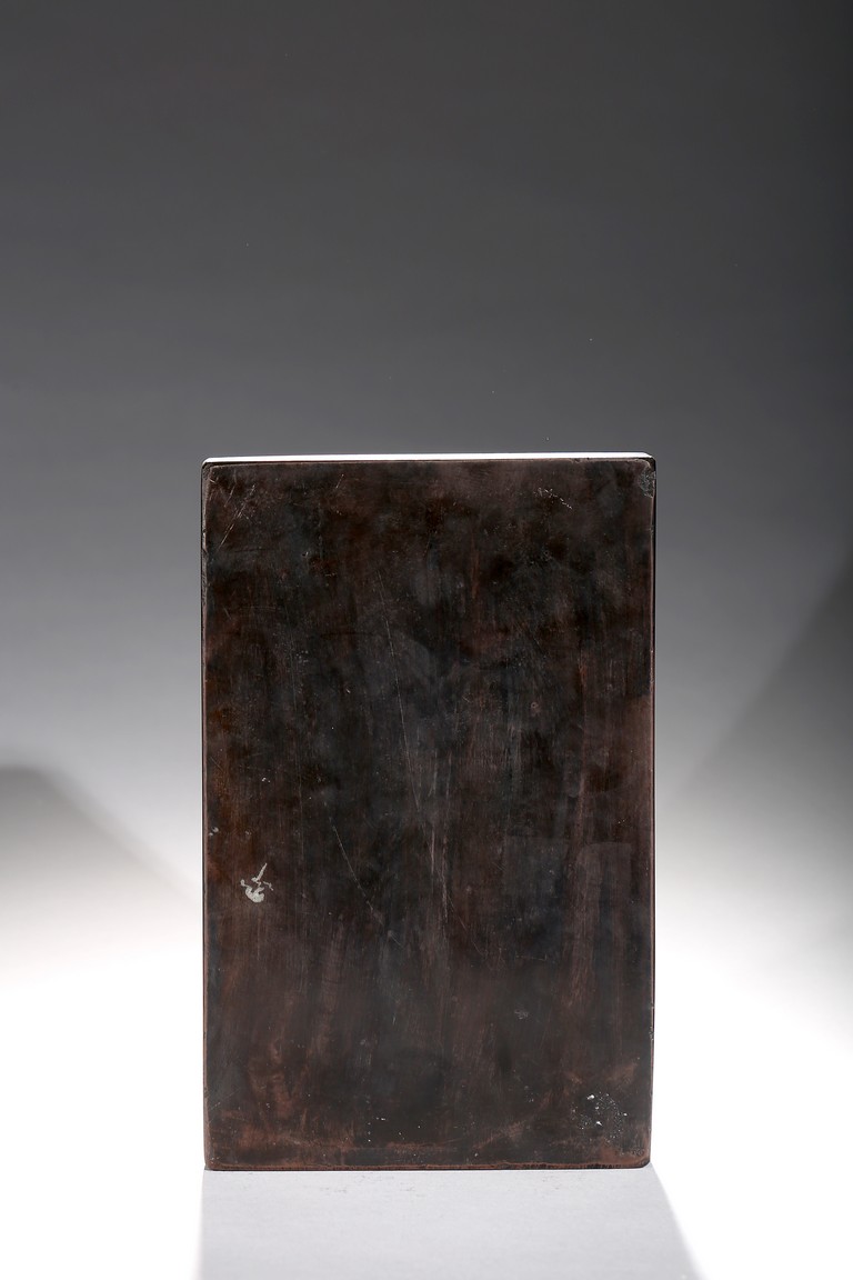 In the form of a rectangular inkstone, the bottom part with a rounded ink cake, the top with a poetic inscriptions. Republic period.
