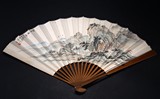 PU JIN: COLOR AND INK ON PAPER 'AUTUMN LANDSCAPE' FAN PAINTING
