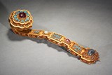 A GILT BRONZE WIRE GEMS AND KINGFISHER FEATHER INLAID RUYI SCEPTER