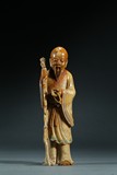 A SOAPSTONE SHOUSHAN STANDING ELDER FIGURE