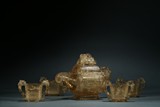 A SET OF FIVE SMOKY QUARTZ TEAPOT AND CUPS