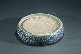 A LARGE BLUE AND WHITE ROUND INKSTONE