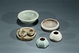 A SET OF FIVE GLAZED CERAMIC OBJECTS