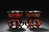 A PAIR OF CINNABAR LACQUER DRAGON BOWL WITH STAND