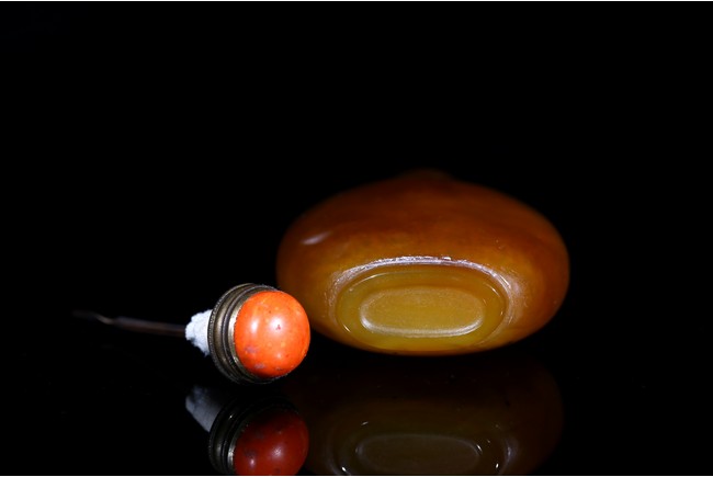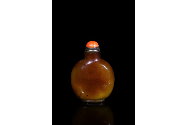 Of rounded circular form with a cylindrical, flat lip, and oval foot ring.