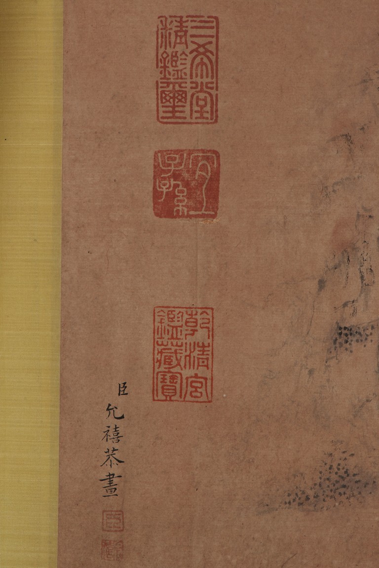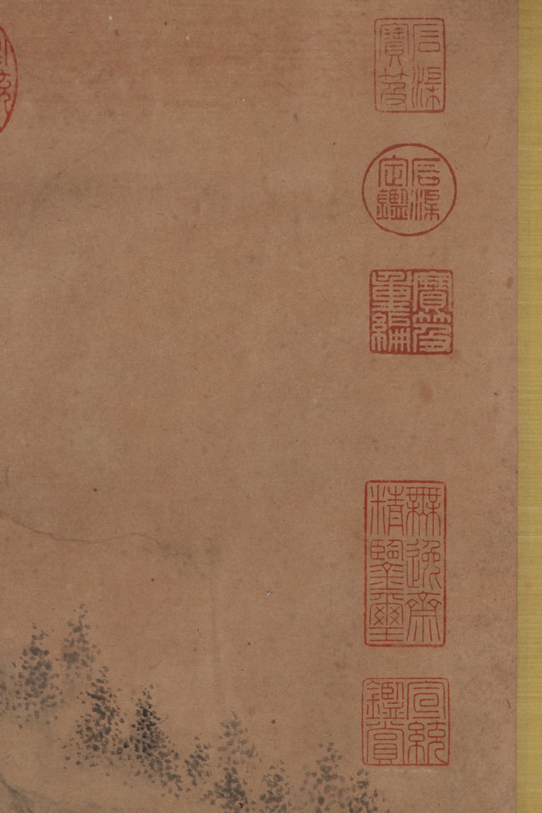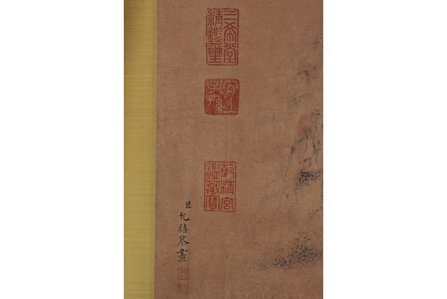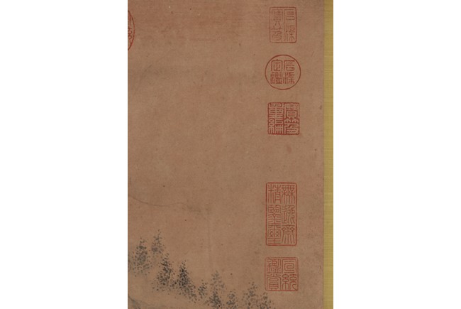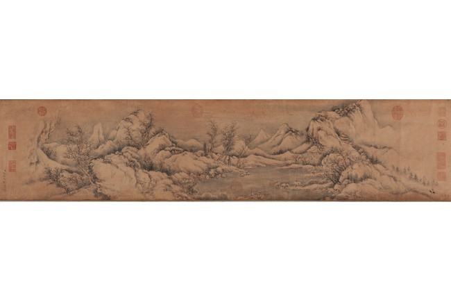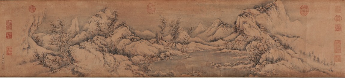 Ink on paper. Landscape. Handscroll. Signed Yun Xi and with two seals of the artist and eleven Imperial seals.