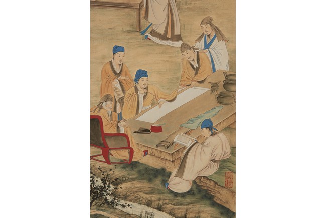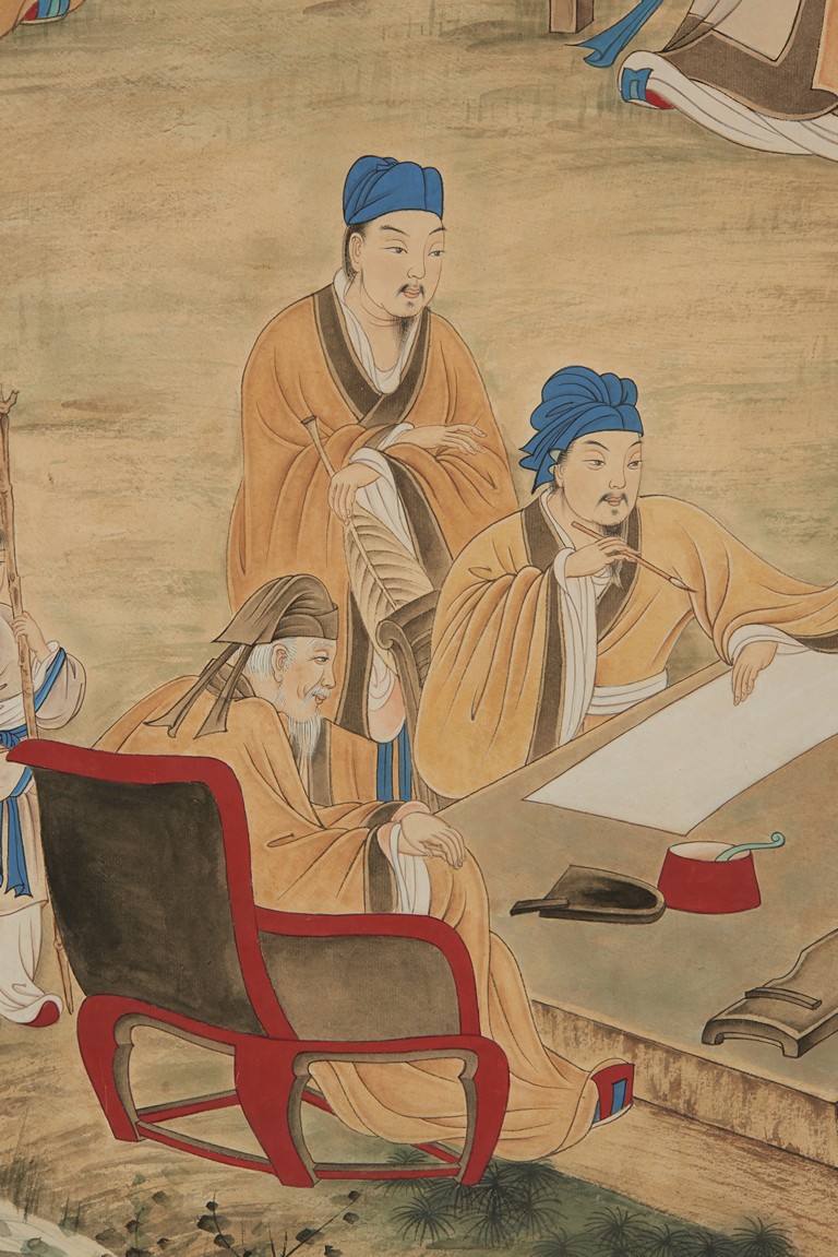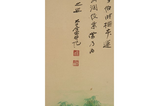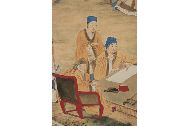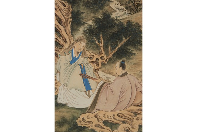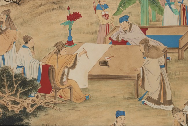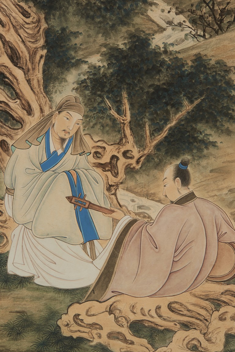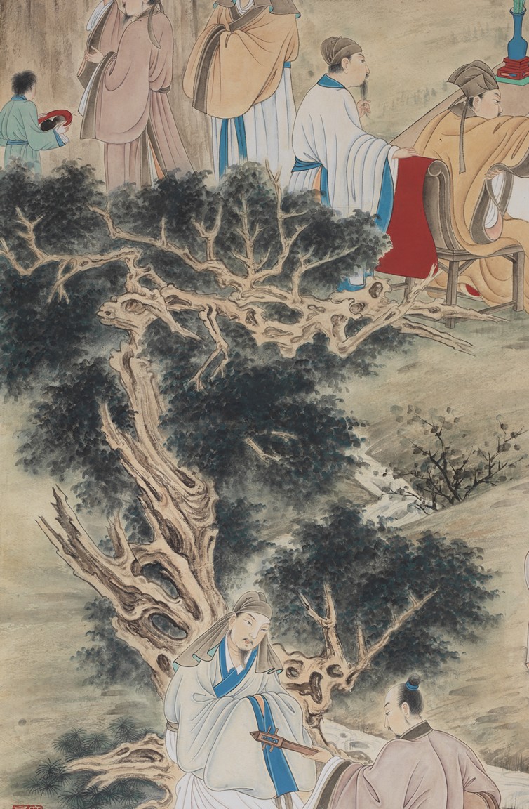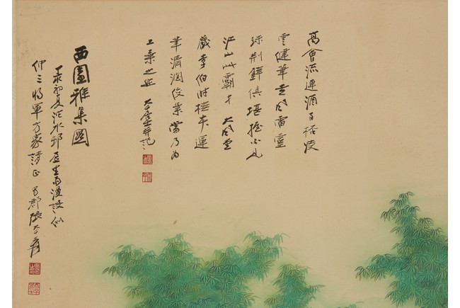 來源:北加州私人藏家珍藏 一九四六年底,四川軍閥潘文華將軍幾次請求張大千先生為其繪制《西園雅集圖》,並懇求尺幅盡量大一些。一九四七年大千先生終於抽出時間為其精心繪制了此幅宏篇巨幅山水人物圖, 並兩次題寫為其繪制此圖的緣由及心情。一九九零年,啟功先生去香港講學期間應朋友之邀,喜見此圖,賦詩一首大加贊賞,並且介紹了潘文華將軍生平及在抗戰中的英勇表現,跋尾贊譽“此圖雄強,氣勢宏大,香江獲觀,欣然為之題。潘文華(1886—1950),號仲三,外號潘鷂子,川軍甫系的武德勵進會第二任會長,劉湘死後替補成為川軍五行中的一人。民國二級陸軍上將。歷任川軍教導師師長兼重慶市長、國民黨第7戰區23軍軍長、28集團軍總司令兼川陜鄂邊區綏靖公署主任、西南長官公署副長官,1949年12月率部起義;新中國西南軍政委員會常務委員。他早年畢業於四川陸軍軍官速成學堂,和劉湘等人是同學。在校期間,他加入中國同盟會。 1909年,他隨軍入藏任副排長,於巴塘一帶作戰,後升任排長,隊長。 1911年,他在駐藏川軍中響應辛亥革命,後兵潰回川。 1919年12月,他從陜南迴四川,投達縣顏德基部,任川軍第七師獨立旅旅長。 1920年,他投靠同學劉湘,此後任川軍第二軍四師師長,1923年他任川東清鄉司令,1924年2月14日,他獲將軍府授“植威將軍”。 1926年7月他兼任重慶商埠督辦公署督辦,後擔任第21軍教導師師長。 1929年2月,他任重慶市首任市長。 1935年1月,他兼任四川剿匪軍南路總指揮,拒中央紅軍於四川境外。 1937年7月,他辭任重慶市市長,率軍到雅安阻擊紅四方面軍。川康整軍後,他任第23軍軍長。 1936年2月15日,他獲授陸軍中將。抗日戰爭期間,他任第25軍團團長,1937年冬,他參加廣泗戰役,1938年1月回到四川。劉湘去世後,他任第28集團軍總司令兼川康綏靖公署副主任、主任。 1940年5月25日,他獲授二級上將,1944年冬,他秘密加入民盟,並與延安保持長期聯繫,多次會見中國共產黨領導人毛澤東、周恩來、王若飛等。 1946年,他任川黔湘鄂邊區綏靖公署主任,1948年8月他因被架空而失去兵權。 1949年4月,他任西南軍政長官公署副長官,12月9日他在四川彭縣與鄧錫侯、劉文輝通電起義。此後,他任西南軍政委員會委員。 1950年11月16日,他病逝於成都。潘文華一生愛國愛民,敬老尊賢,寬厚信守,熱愛桑梓,重視教育,關懷青少年。至今人們贊頌不已,記憶猶新。