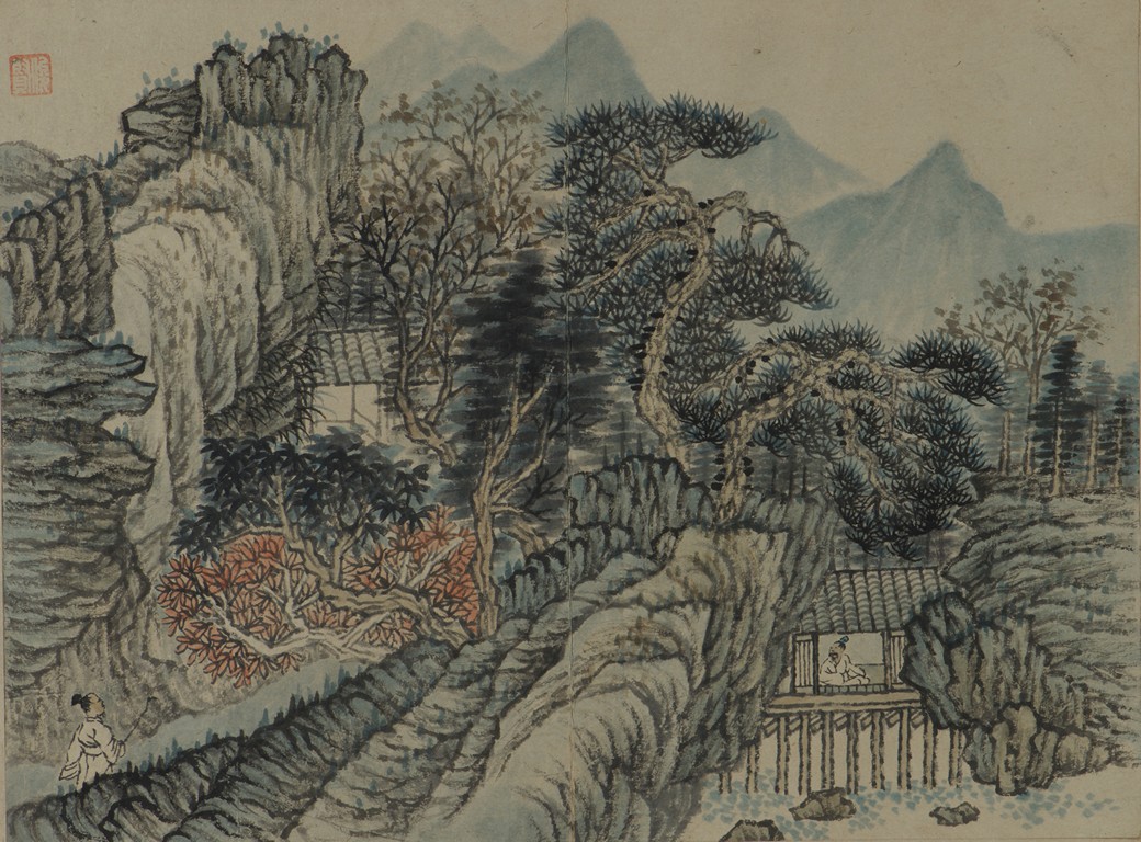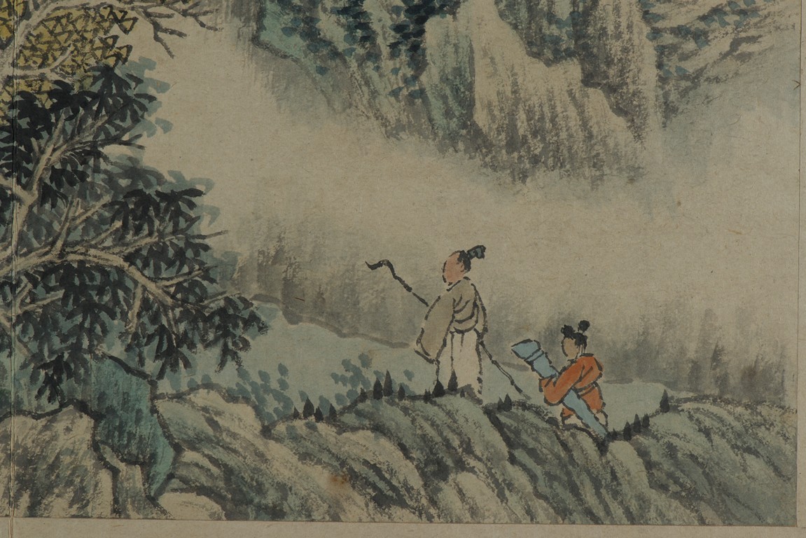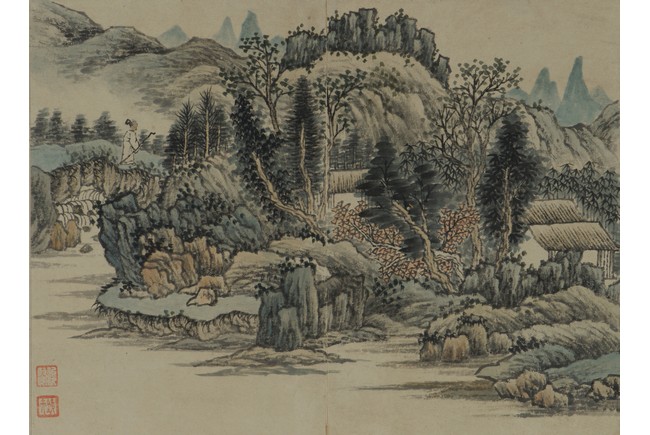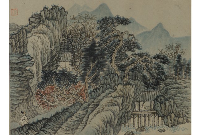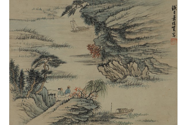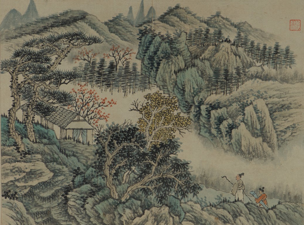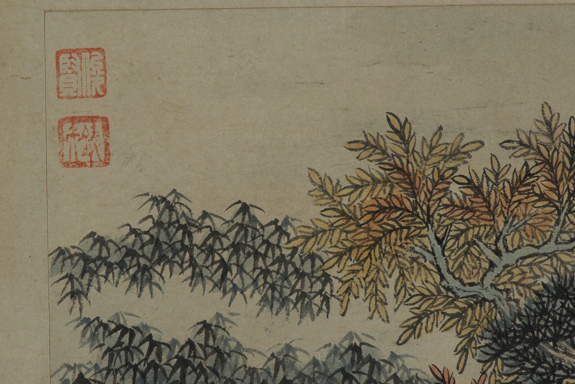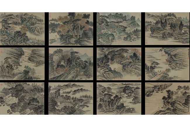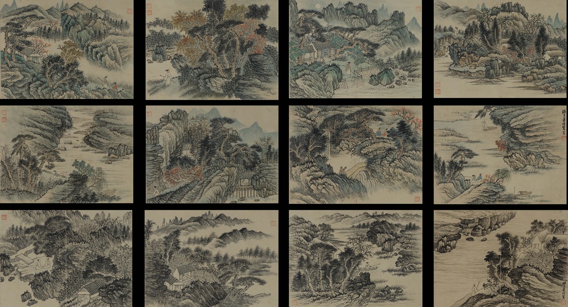 Color and ink on paper. Landscapes. Twelve-leaf Painting Album. Signed Xiao Junxian and with seals of the artist.
