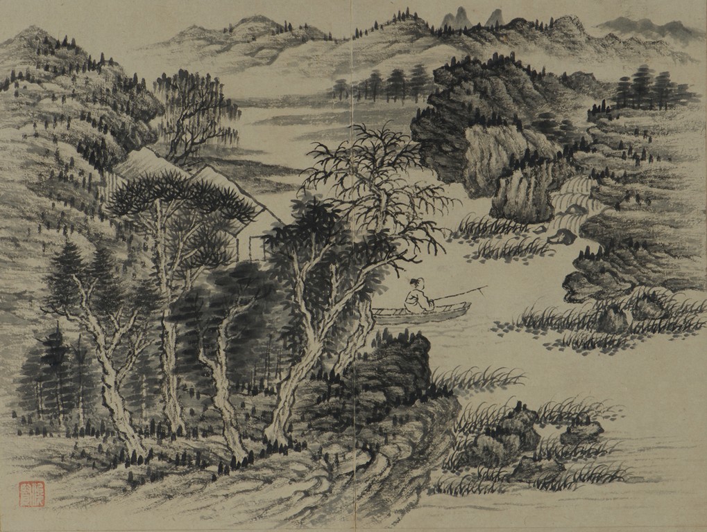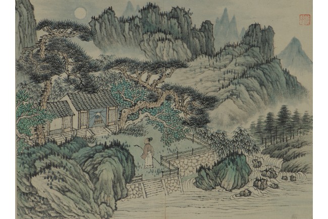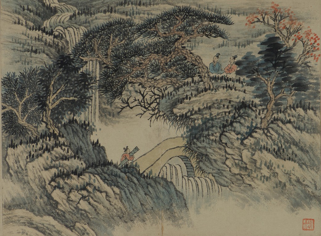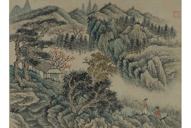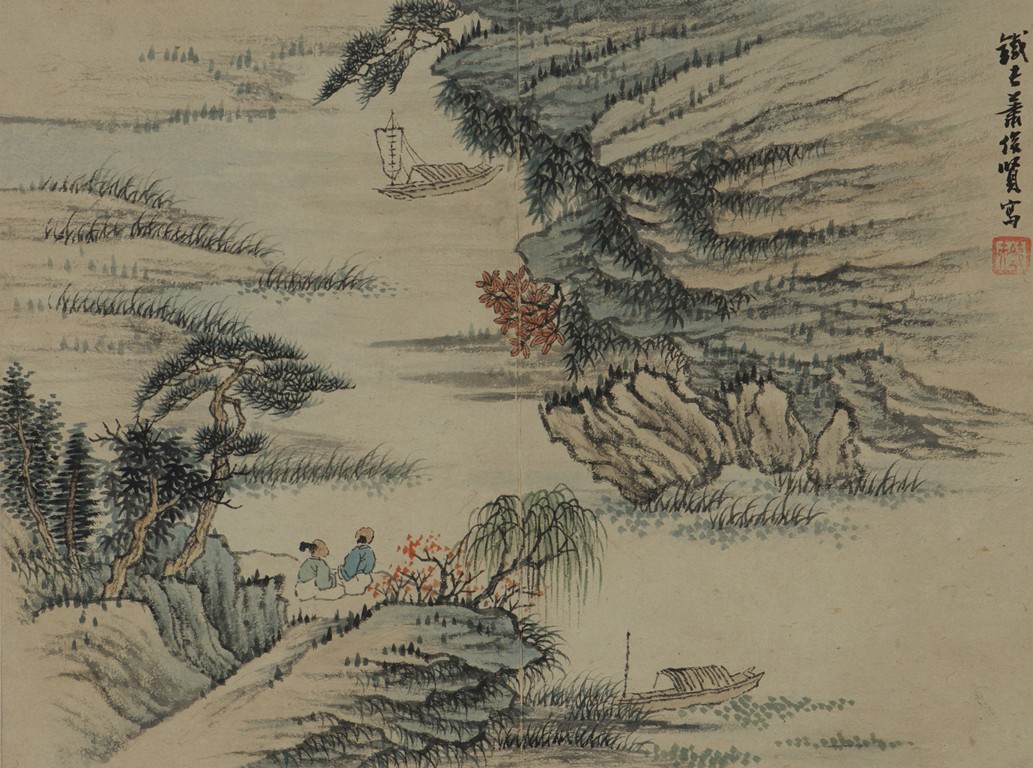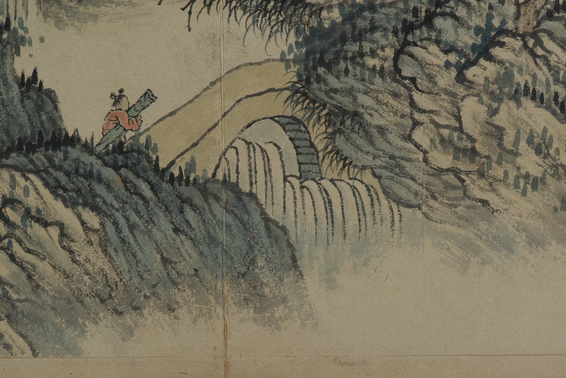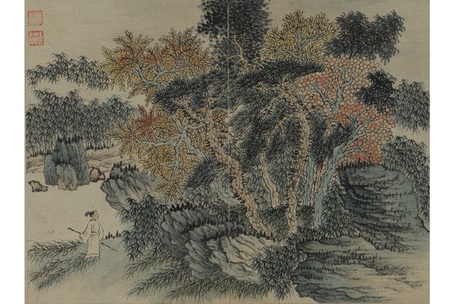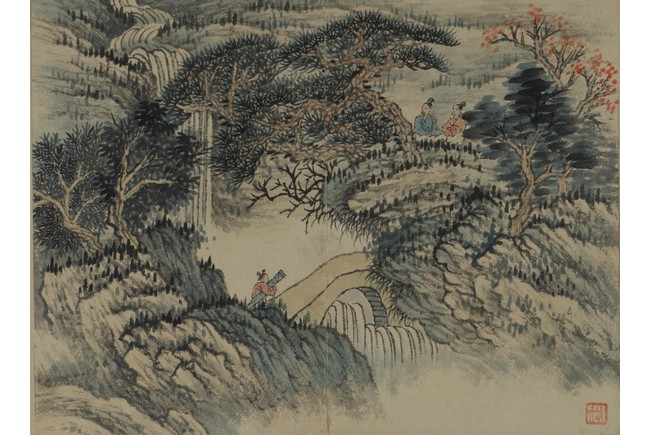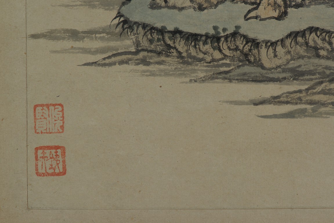 Color and ink on paper. Landscapes. Twelve-leaf Painting Album. Signed Xiao Junxian and with seals of the artist.