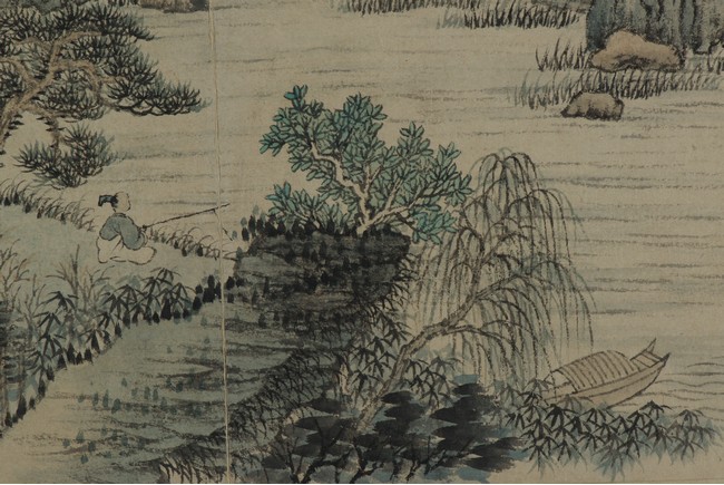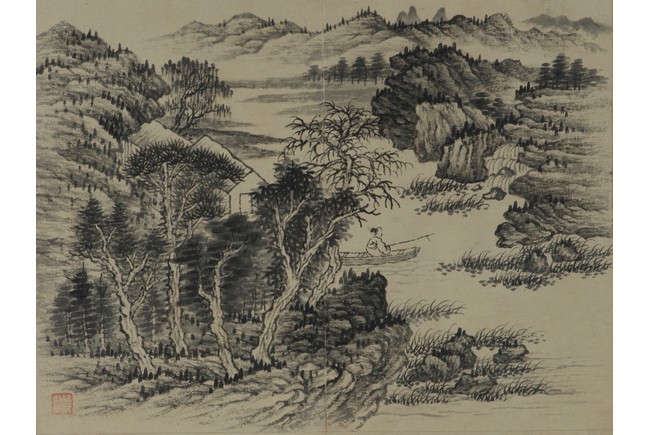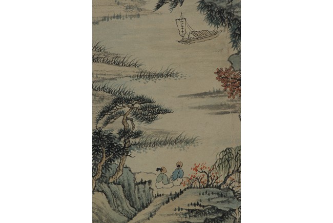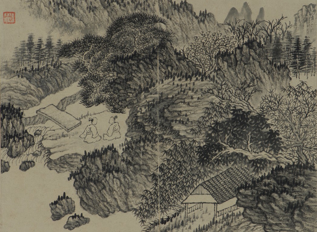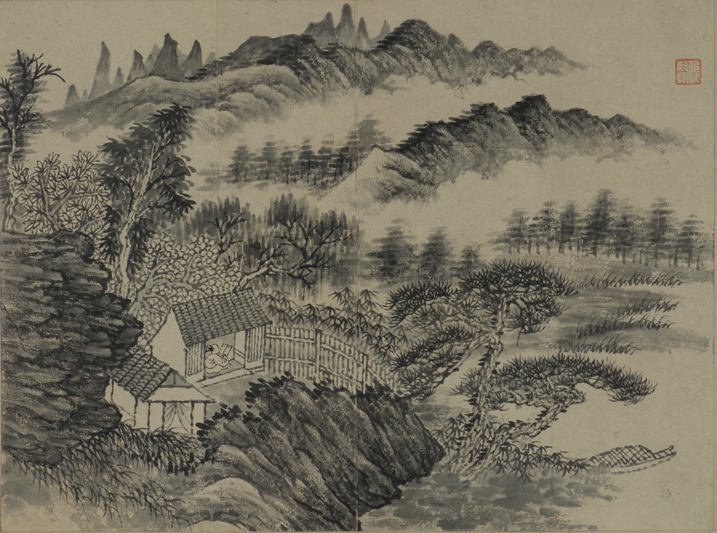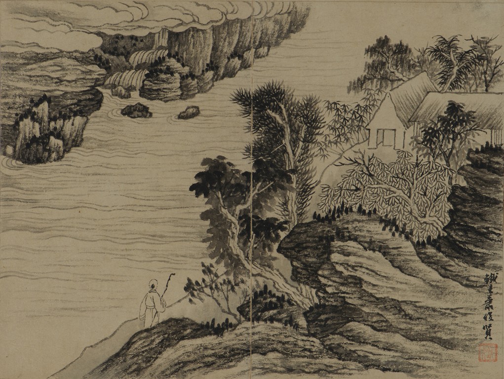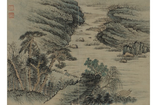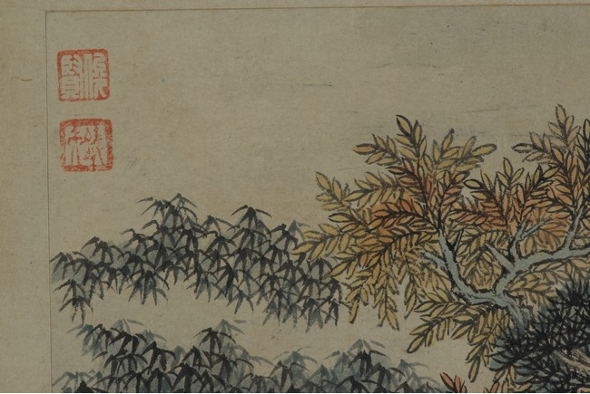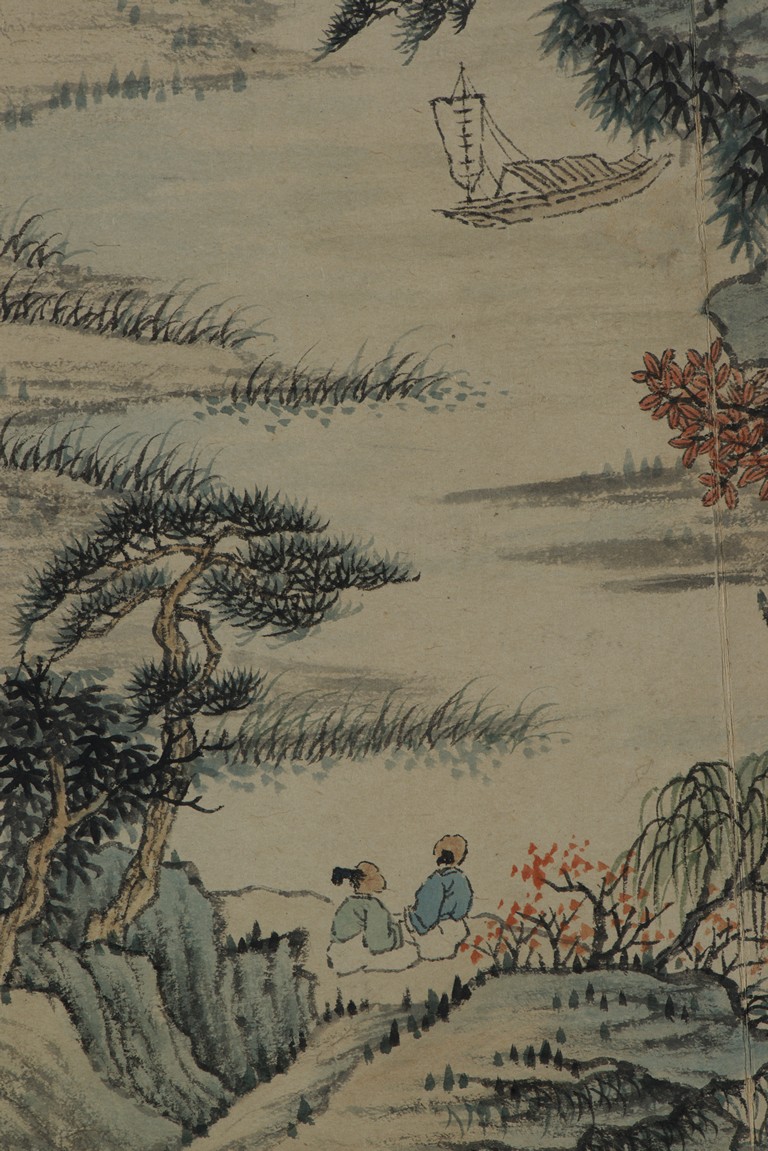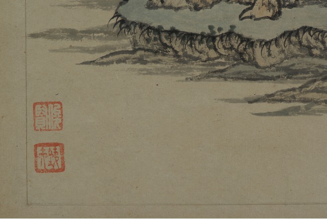 Color and ink on paper. Landscapes. Twelve-leaf Painting Album. Signed Xiao Junxian and with seals of the artist.