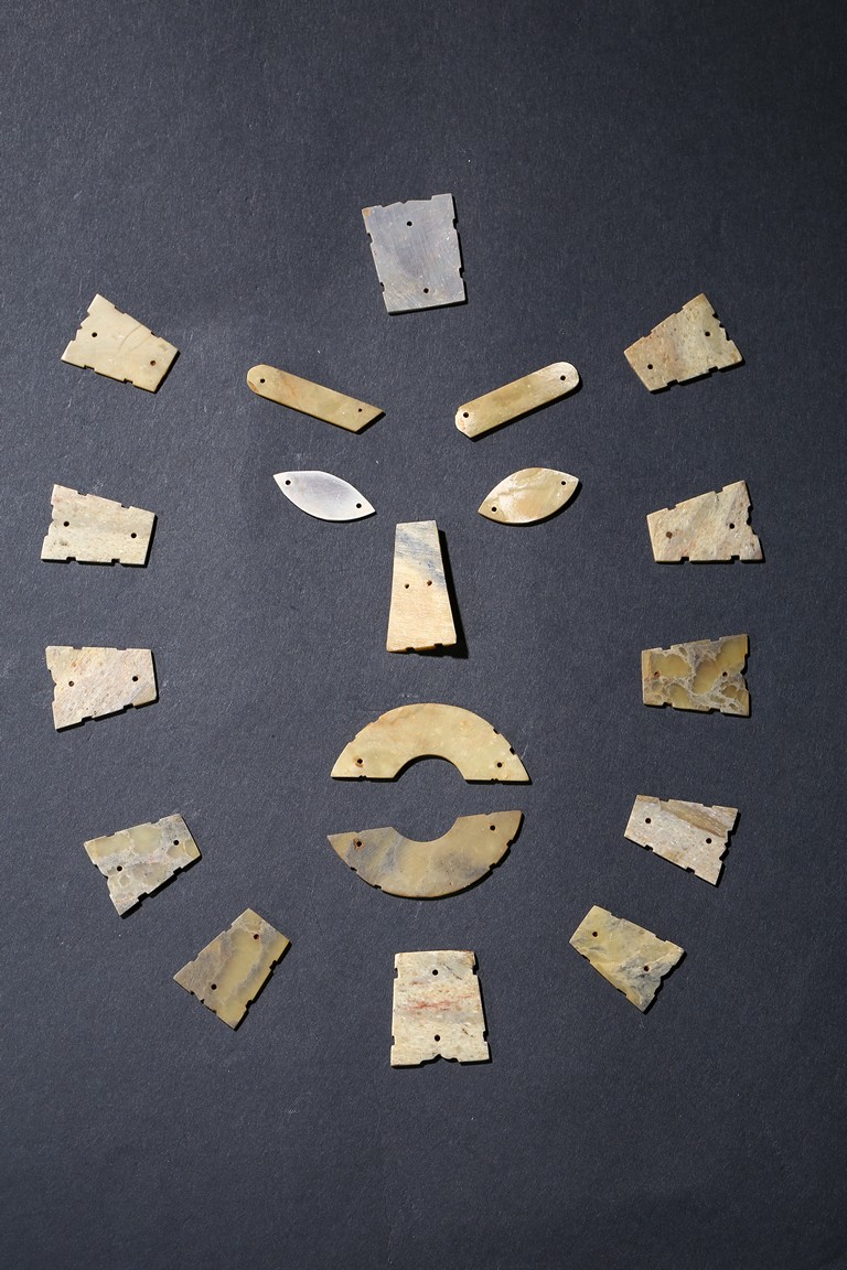 Consisting of 19 separated jade pieces covering the eyes, nose, mouth, and peripheral areas of face. Western Zhou dynasty period.