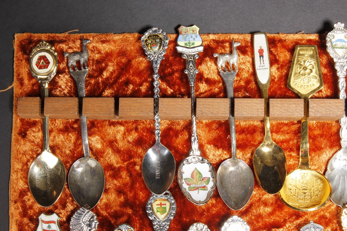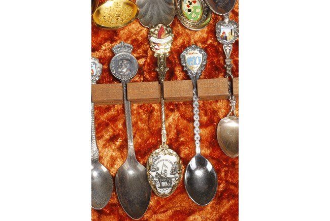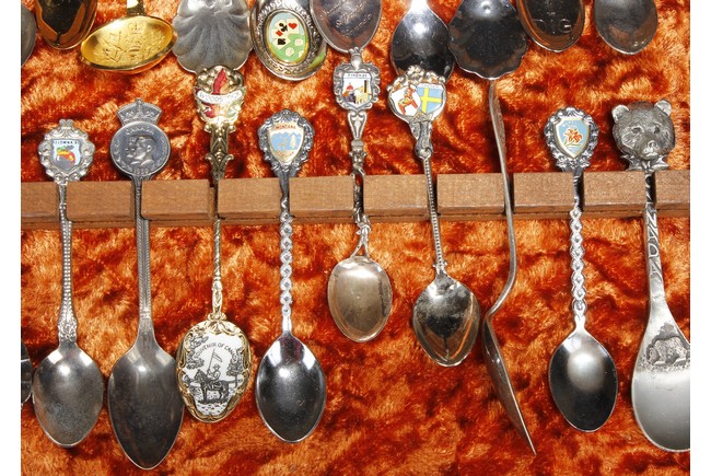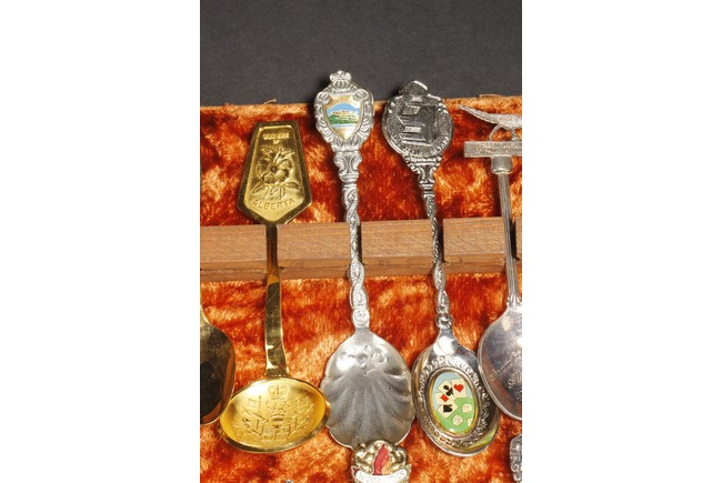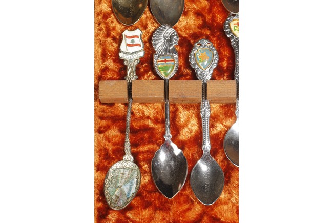 This box contains a set of 30 silver spoons, each with different size, shape, and design theme. Majority of these spoons were of the Canadian origin.