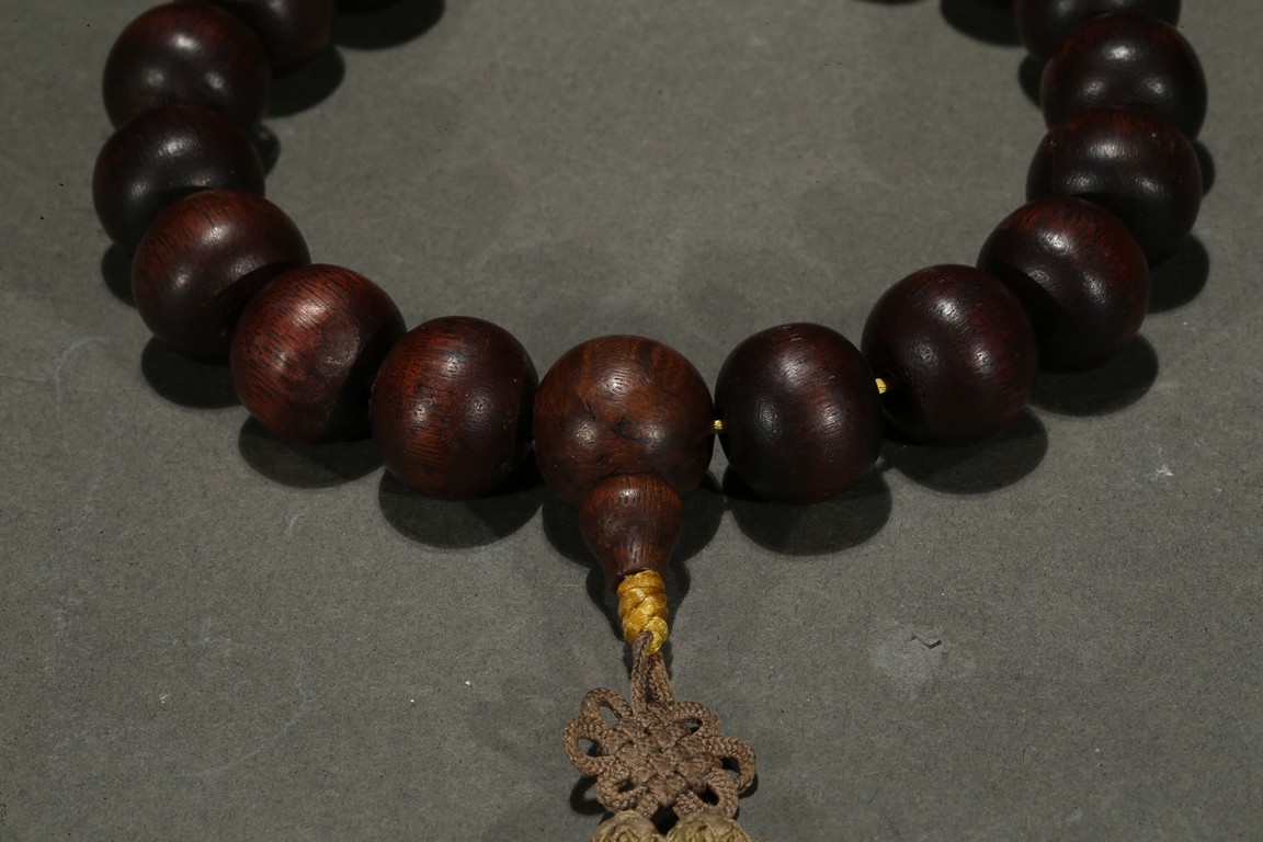 Composed of eighteen well-polished rounded agarwood beads, each is of dark warm brown tone with aroma. Qing Dynasty period.