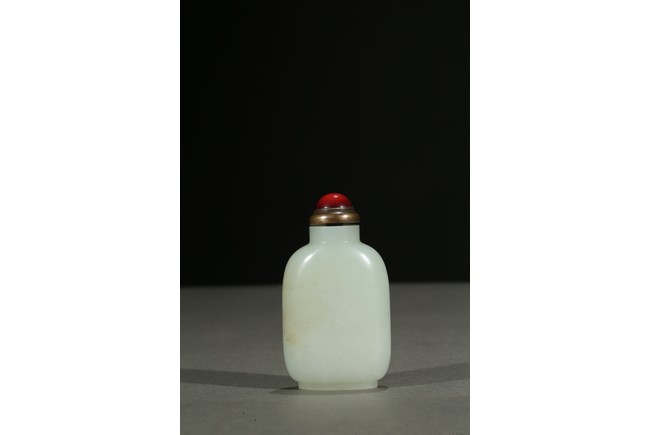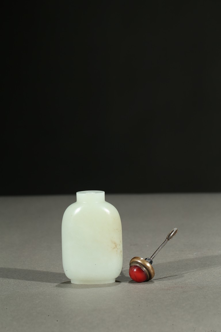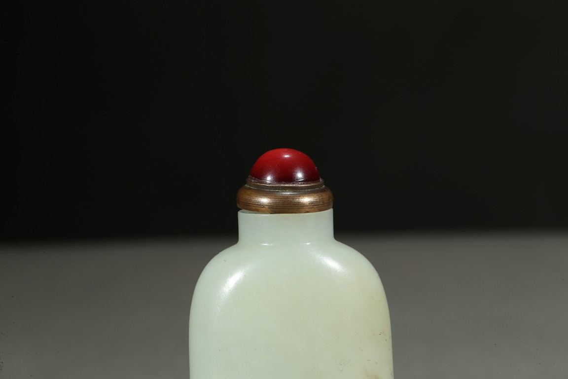 A WHITE JADE CARVED SNUFF BOTTLE 清 白玉鼻煙壺