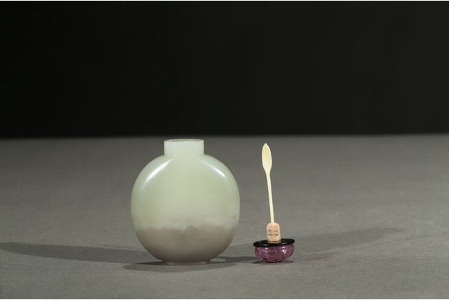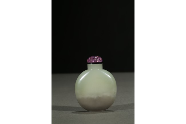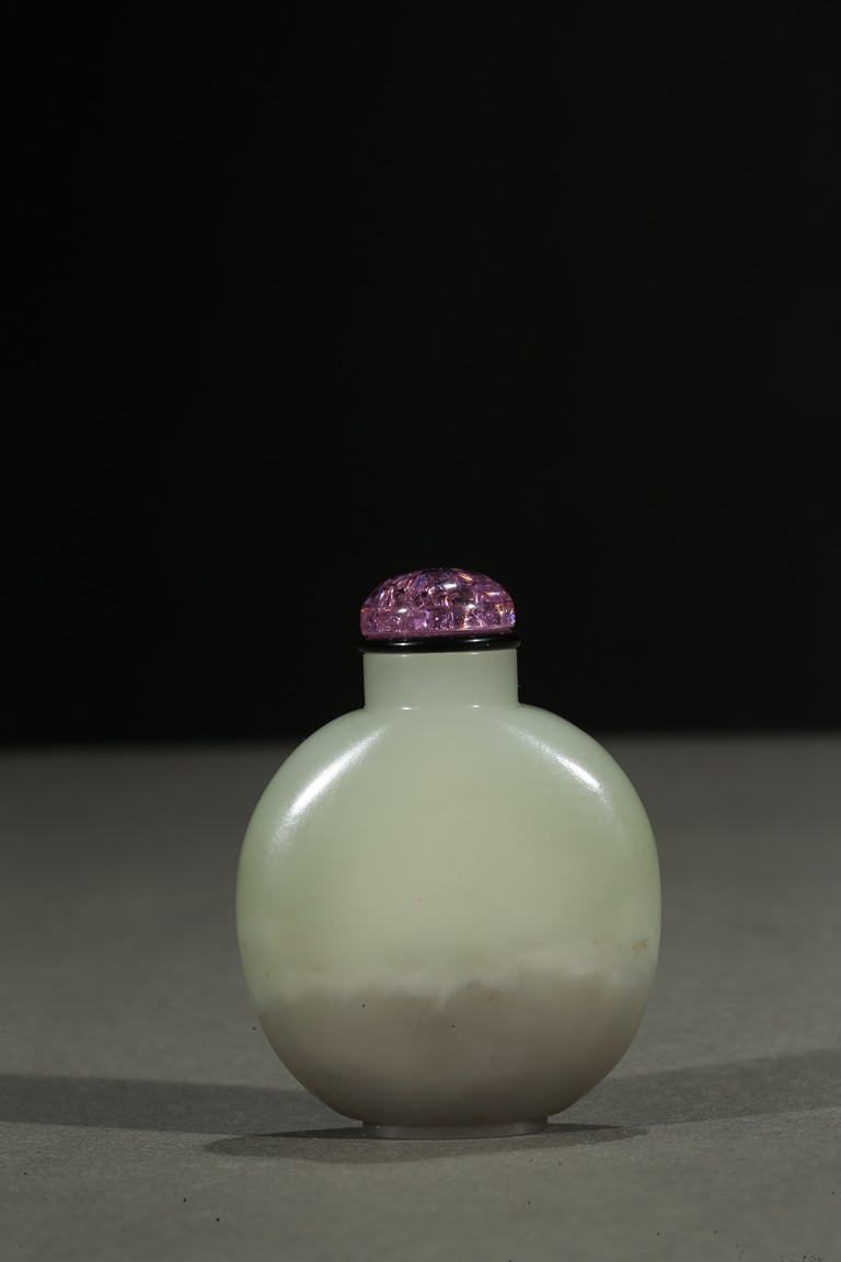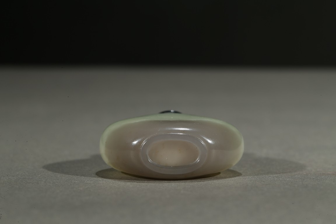 Of rounded form, the stone is of well-polished even white tone with lower half in light grey tone. Qing Dynasty period.