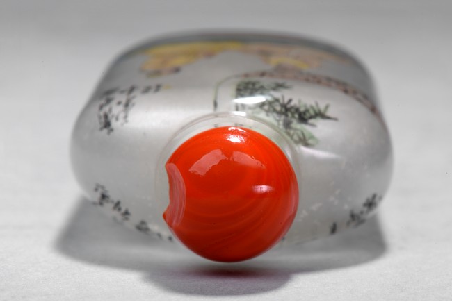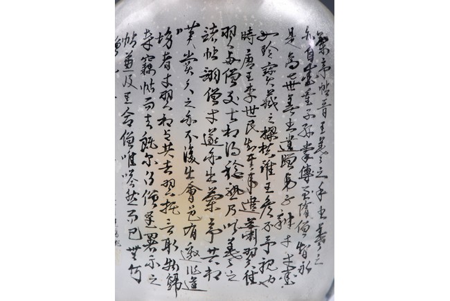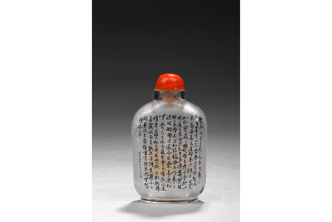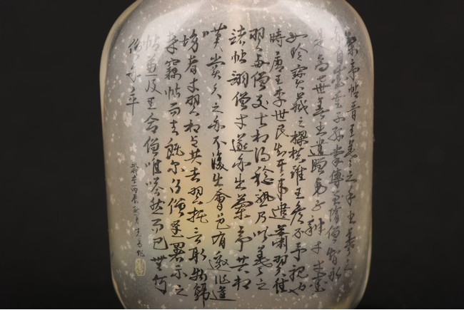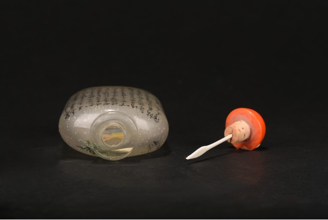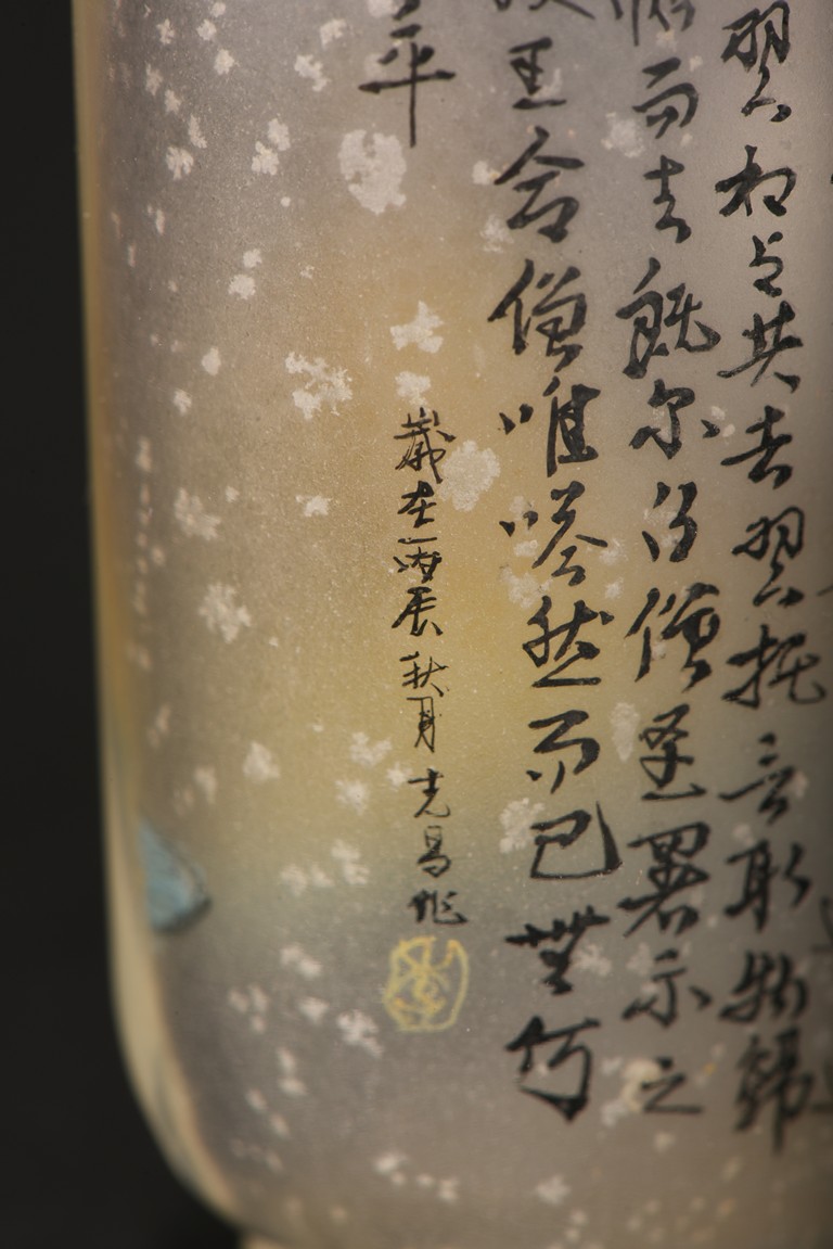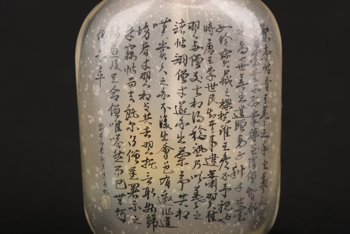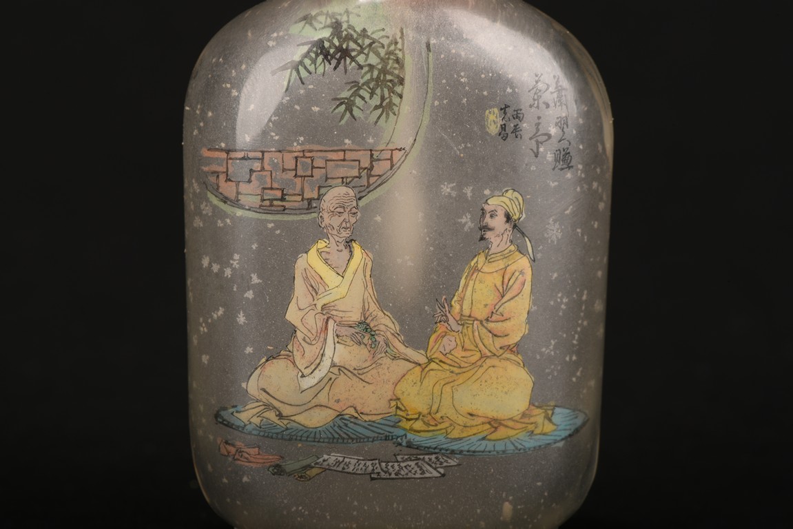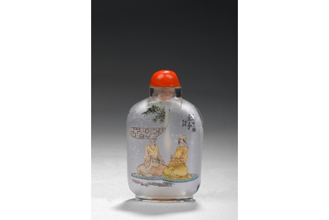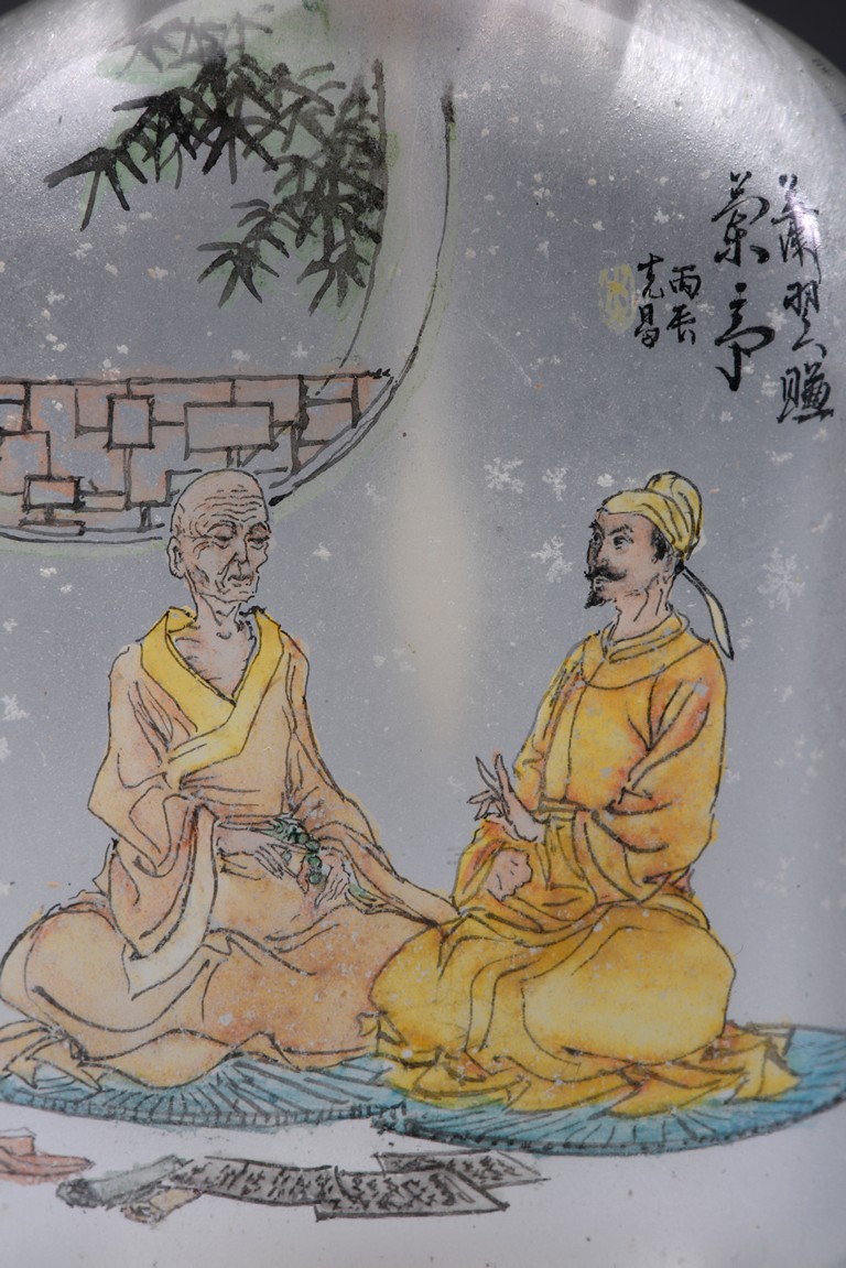 Of flattened rectangular form painted with a scene of two elderly men in conversation, the reverse with poem inscription. Republic period.