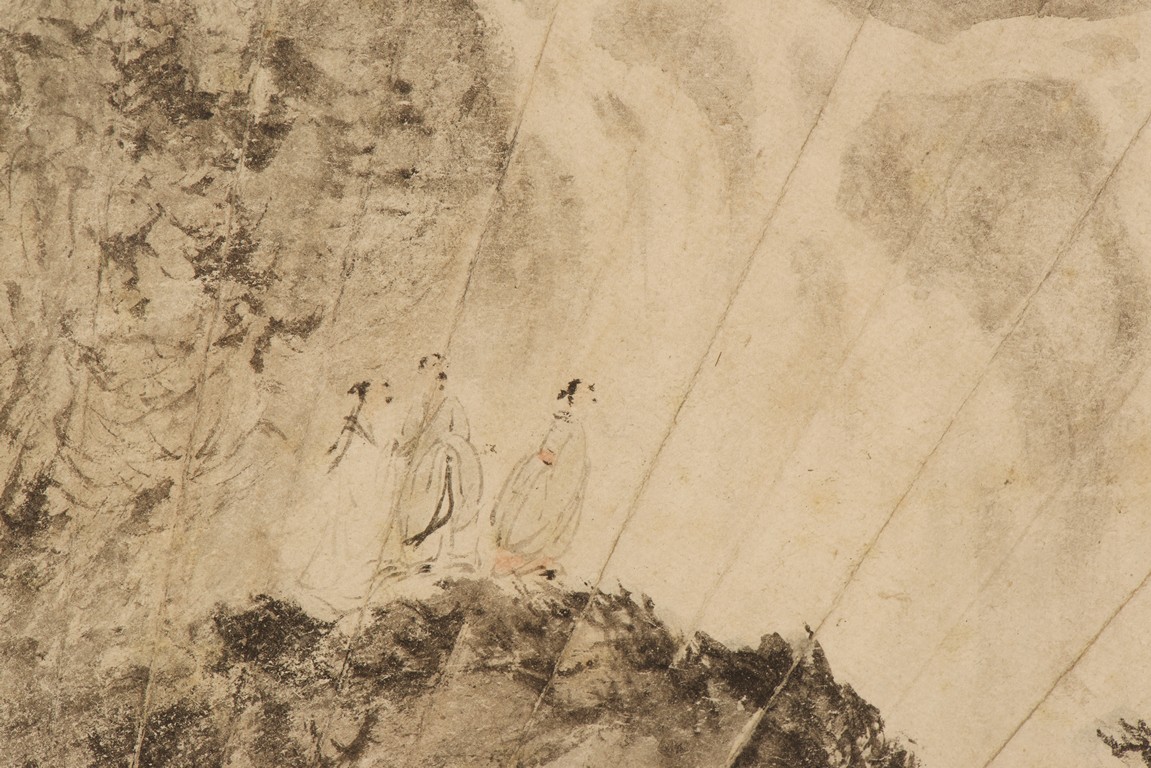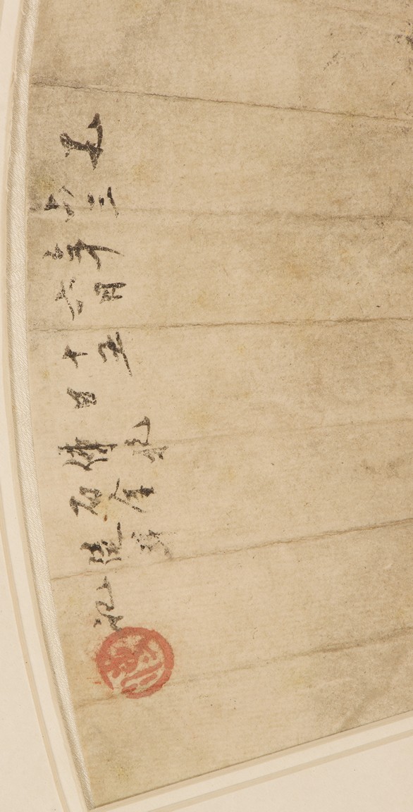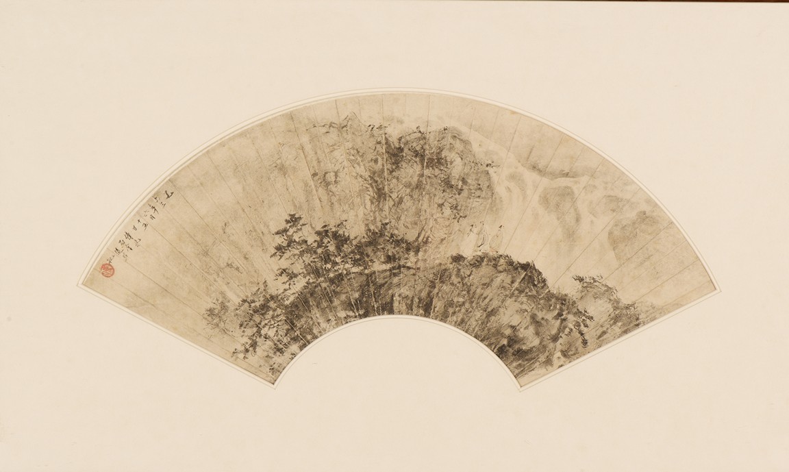 Ink on paper. Landscape. Fan Painting. Mounted for framing. Inscribed and signed Baoshi, with one seal of the artist's.