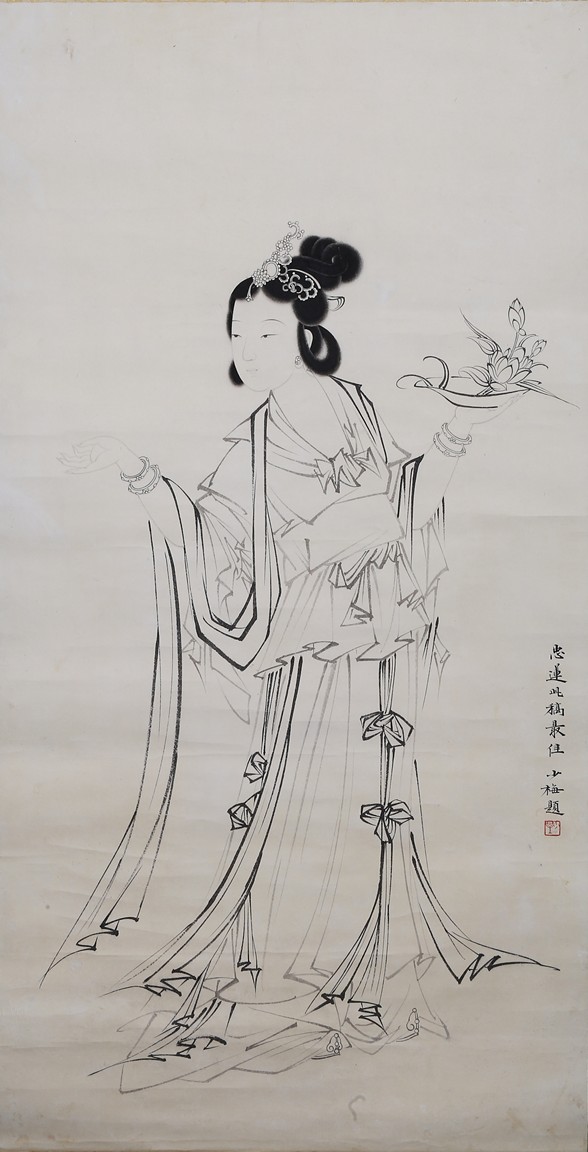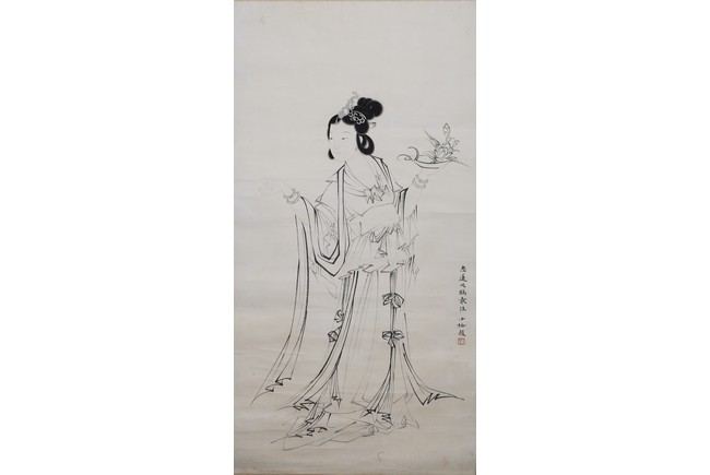 Ink on paper. Beauty. Inscribed and signed by Chen Shaomei, indicating the painting is done by Feng Zhonglian, Chen Shaomei's wife, including one seal of Shaomei.
