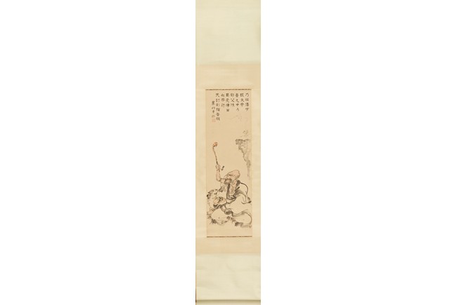 Color and ink on paper. Luohan. Hanging scroll. Inscribed and signed Zeng Xi, with one seal of the artist's.