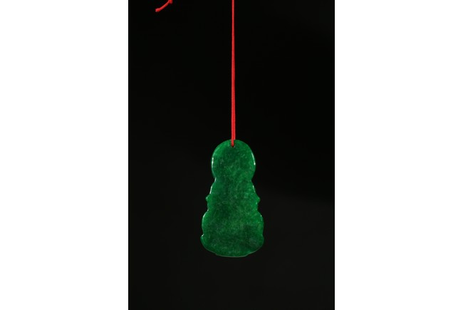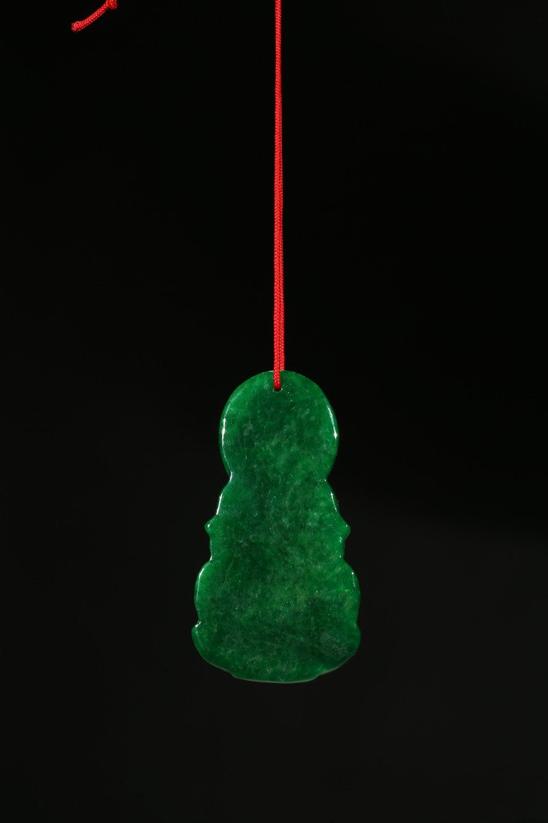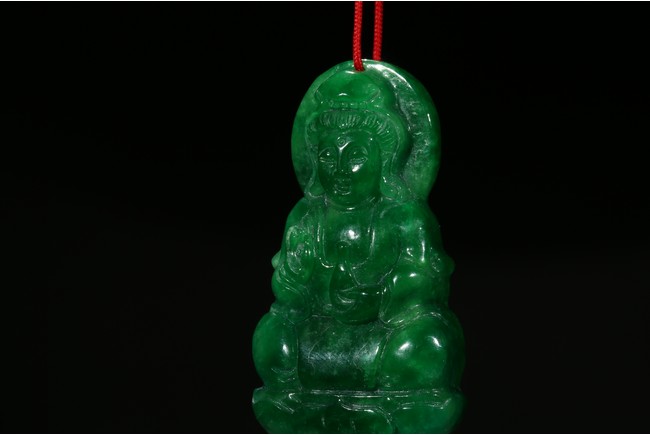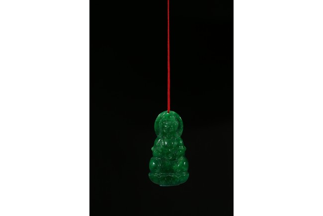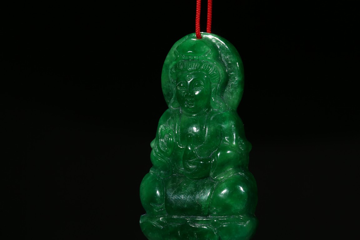 A SPINACH GREEN JADEITE PENDANT 翠玉觀音吊墜