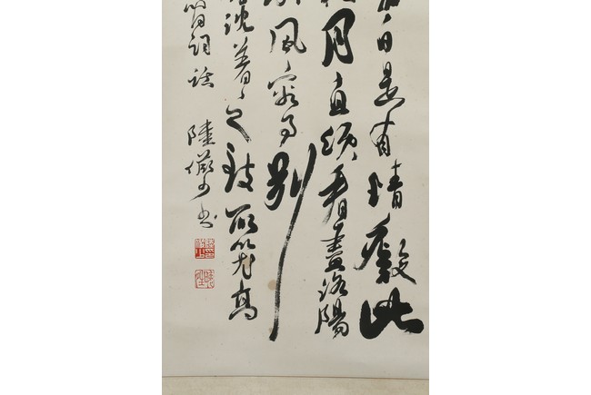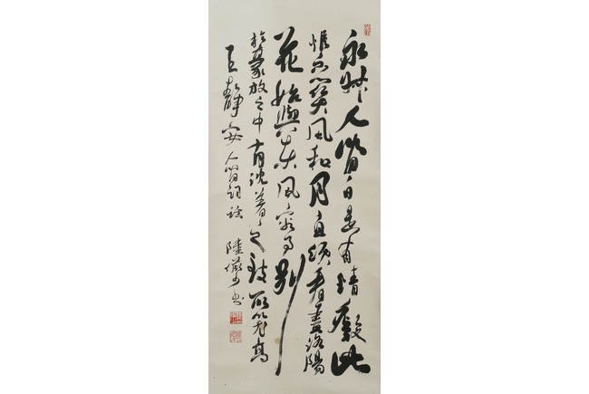 Ink on paper. Running Script Calligraphy. Hanging scroll. Signed Lu Yanshao, with three seals of the artist's.