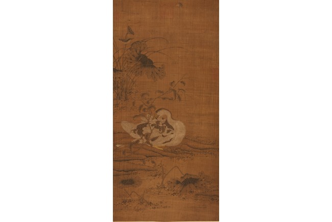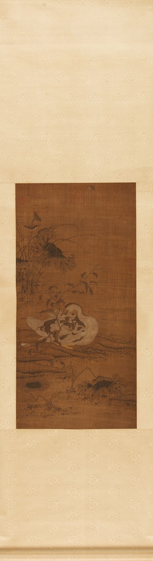 ANONYMOUS: COLOR AND INK ON SILK PAINTING 佚名 鵝荷 設色絹本 立軸