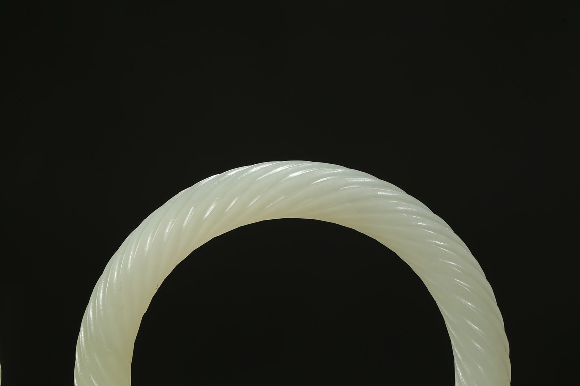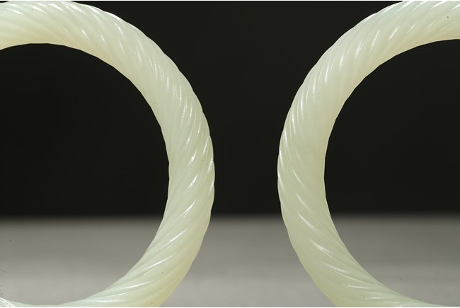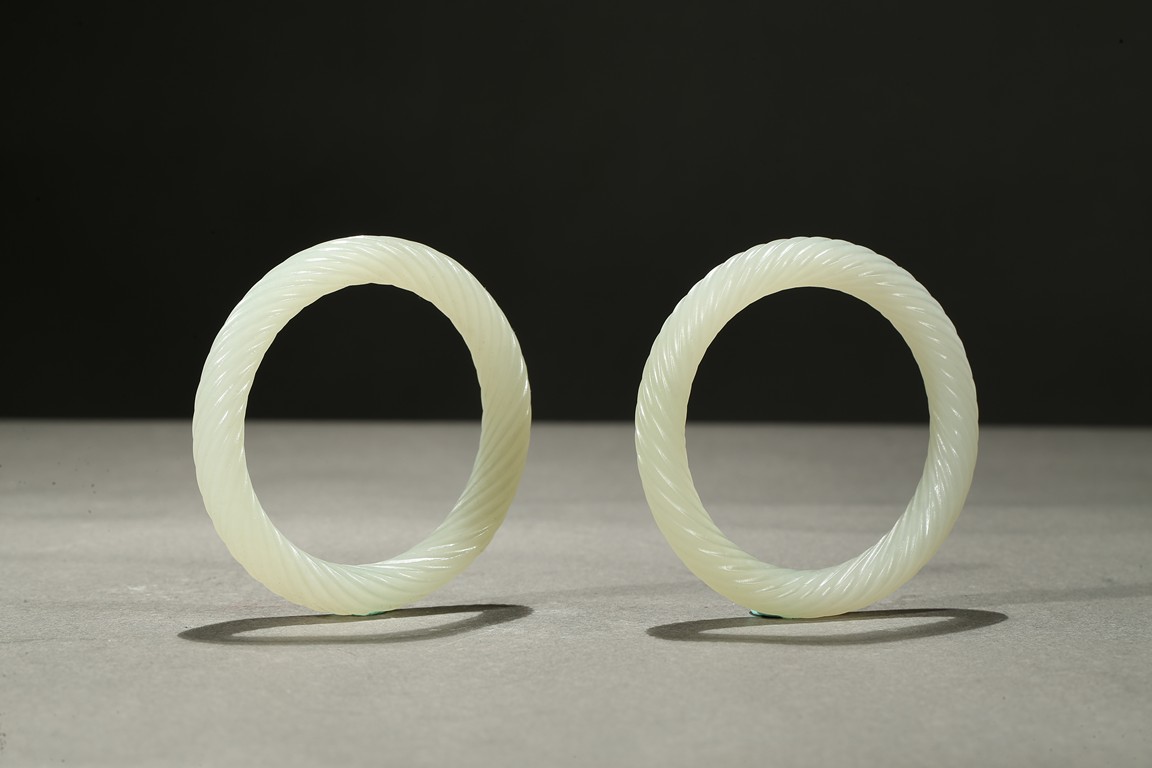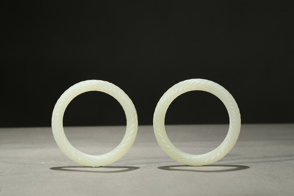 A PAIR OF ROPE-TWISTED BANGLES 繩紋玉鐲一對