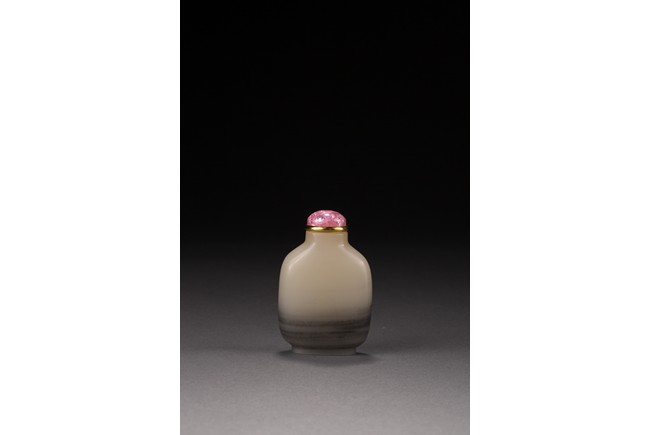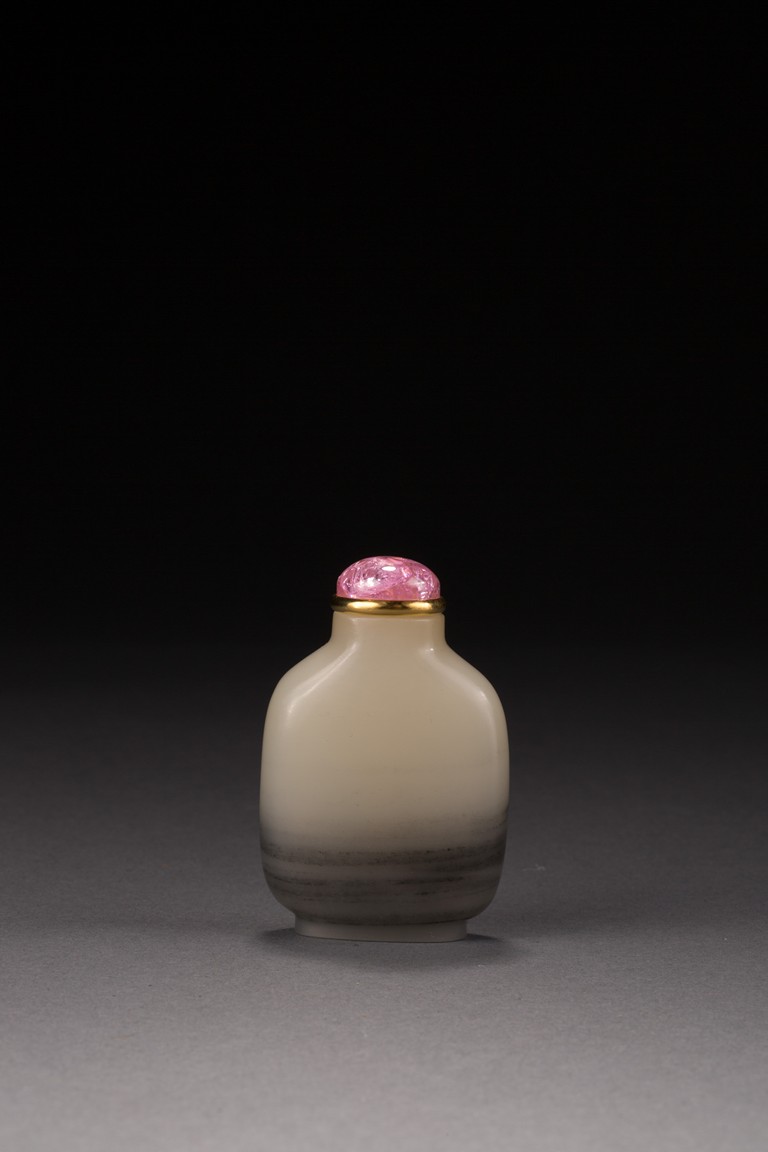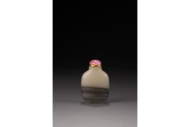 Of rounded rectangular form, the stone is of smoothly polished white tone with grey streaks on the lower half, the base with four character mark. Qing Dynasty period.