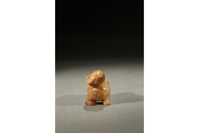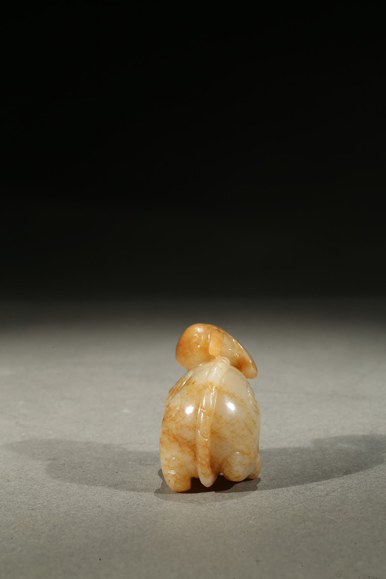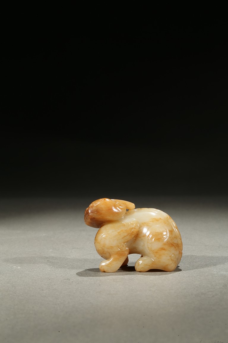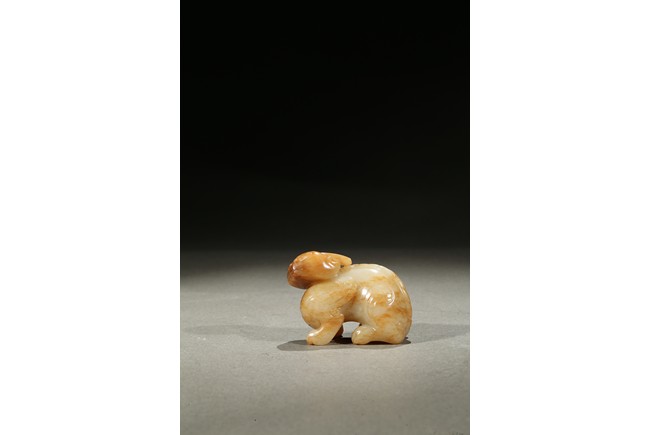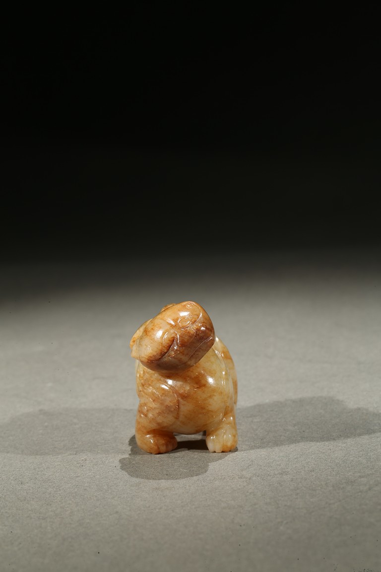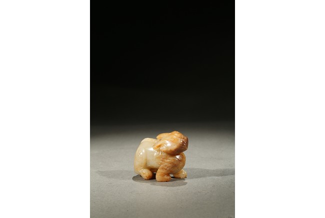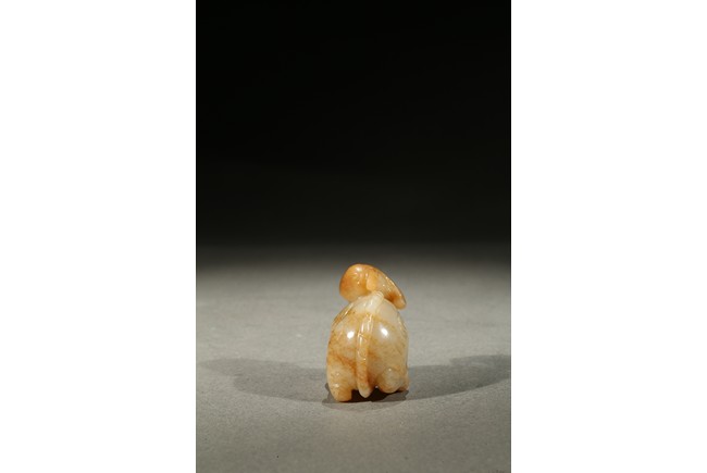 Well worked in the round and detailed with winged haunches, the white tone stone with russet inclusions and veins. Ming Dynasty period.