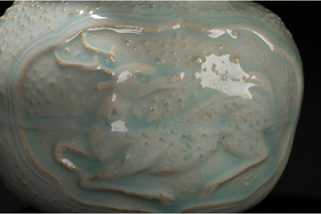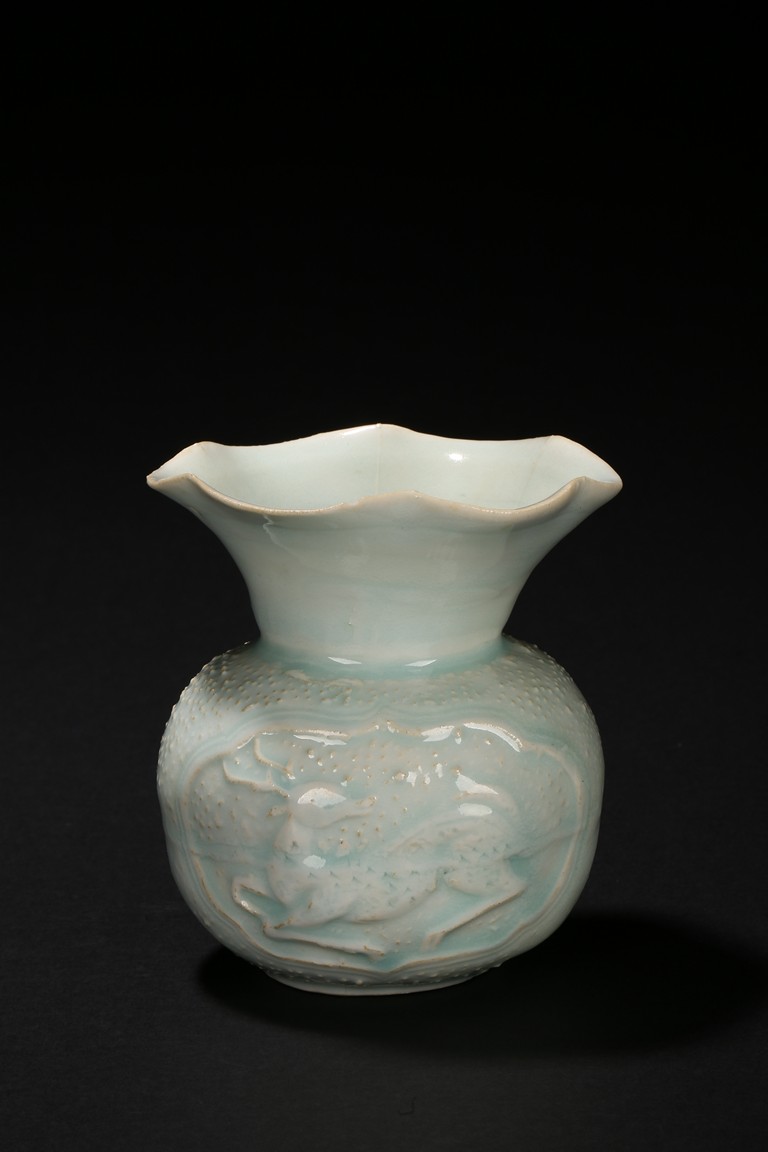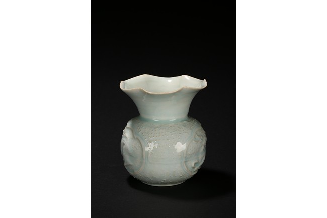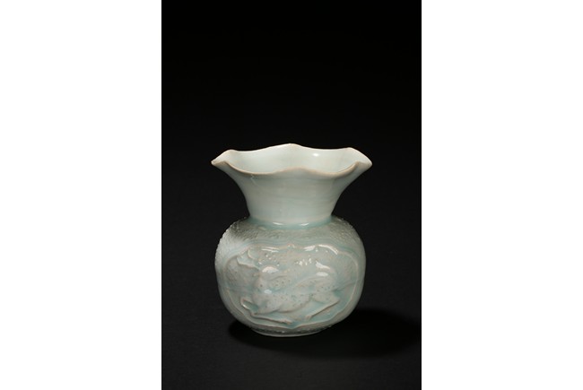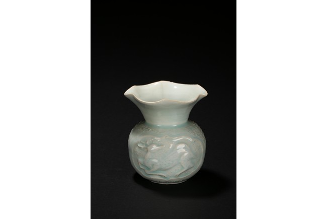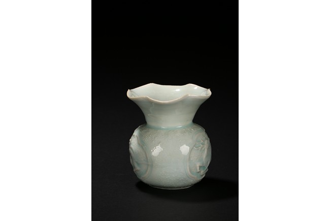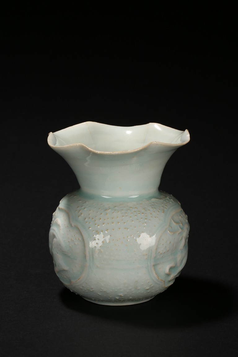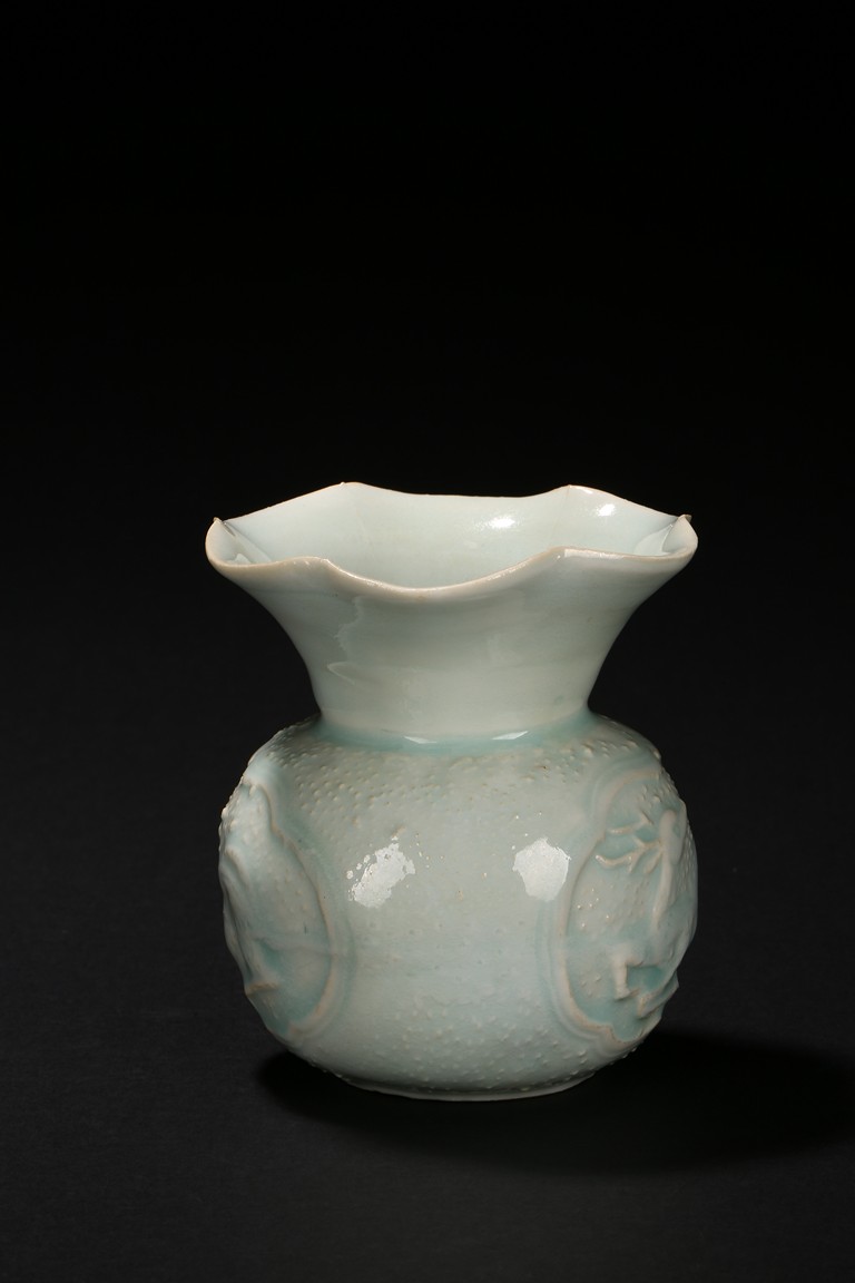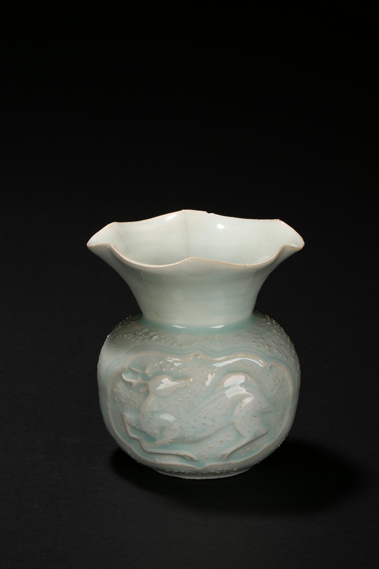 A WHITE AND CELADON GLAZE VASE 明 青白釉鹿紋敞口瓶