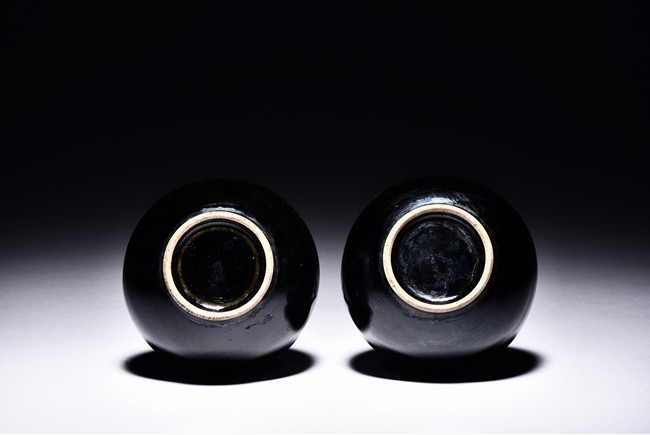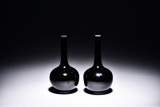 A PAIR OF MIRROR BLACK GLAZED VASES    清 烏金釉長頸瓶一對