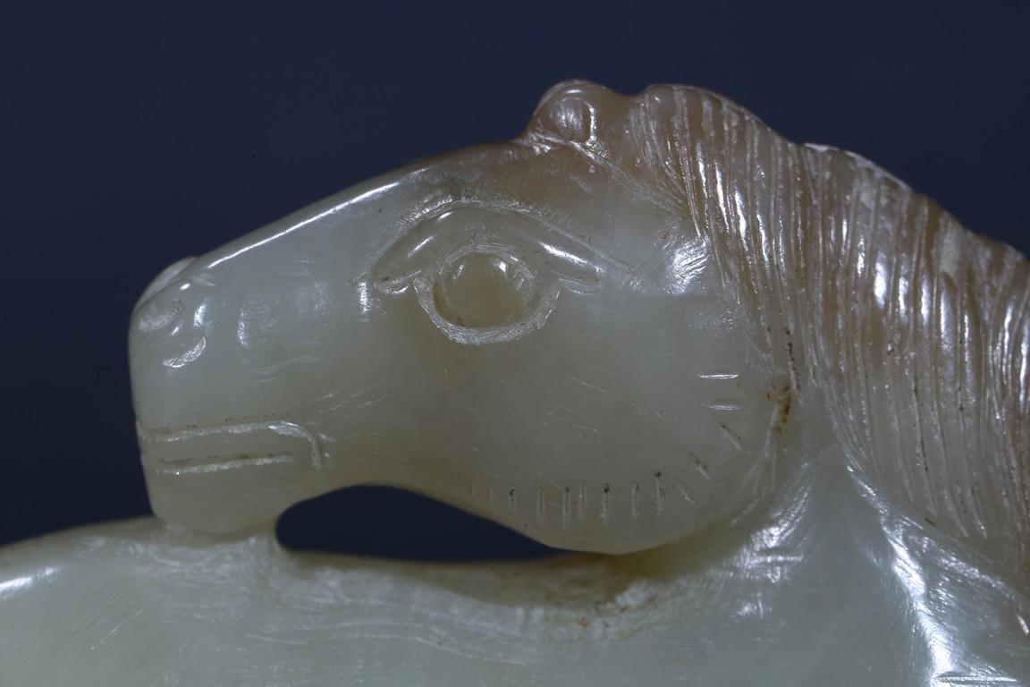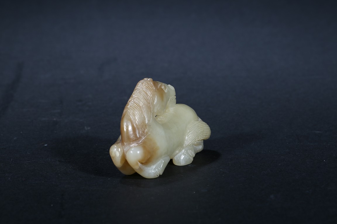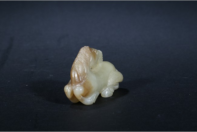 The recumbent horse carved with head turned back detailed with incised mane and tail. Ming Dynasty period.