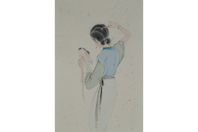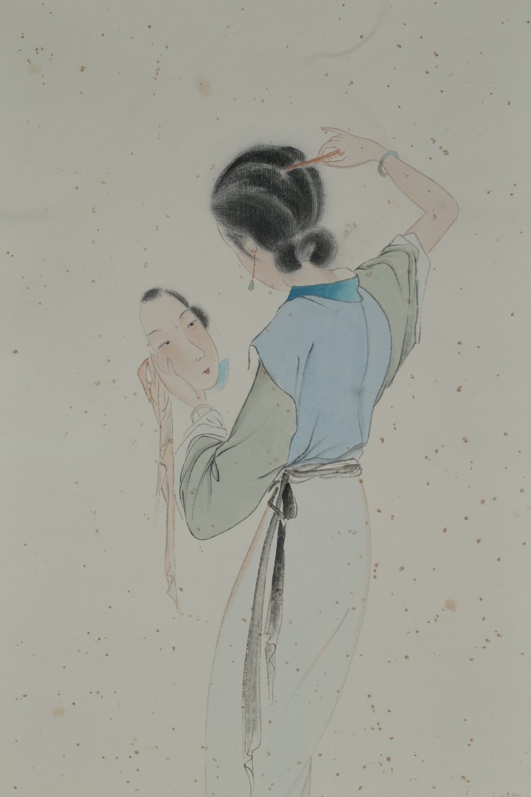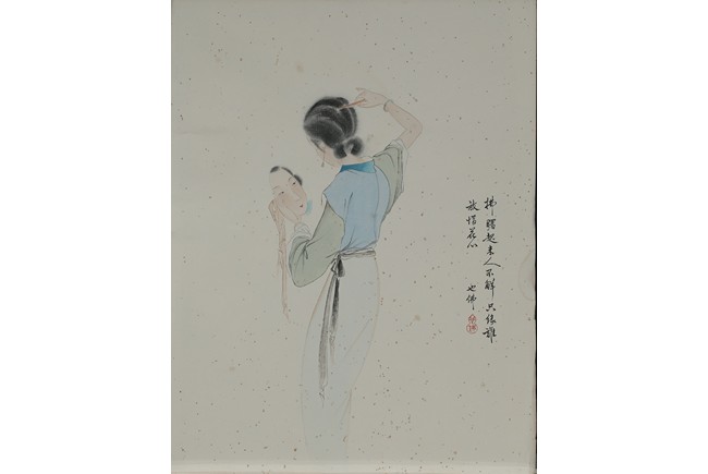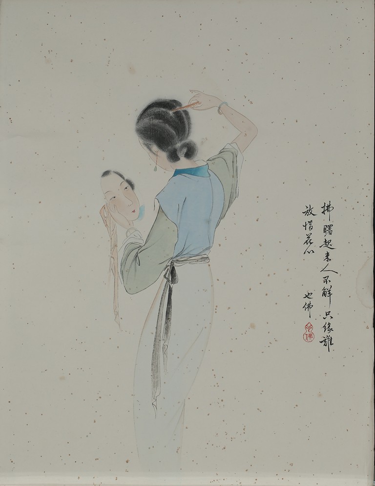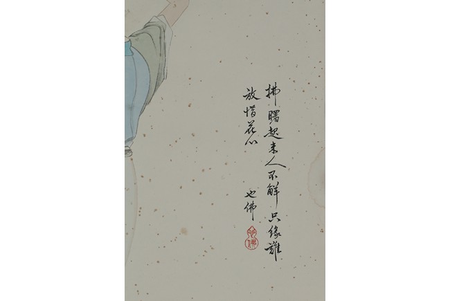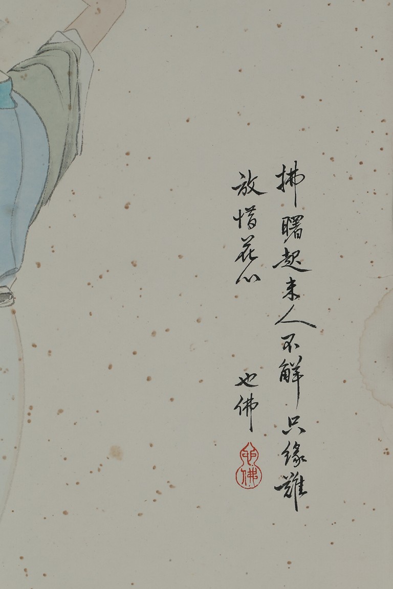 Color and ink in paper. Lady. Unframed. Inscribed and signed Ye Fo, with one seal of the artist. Attributed to Ye Fo.