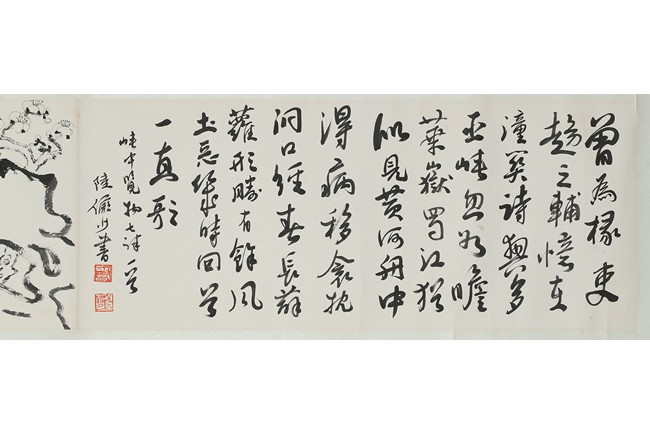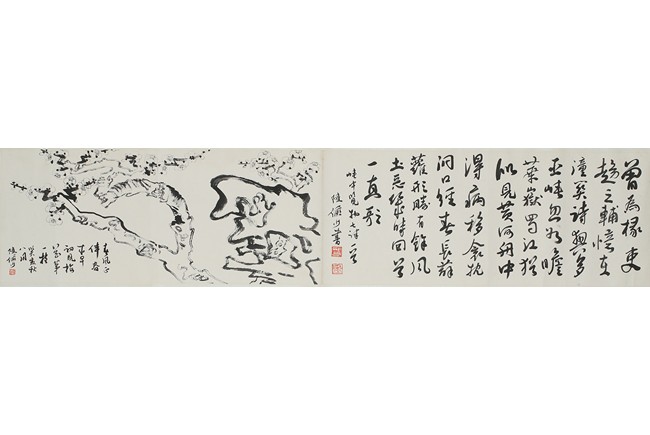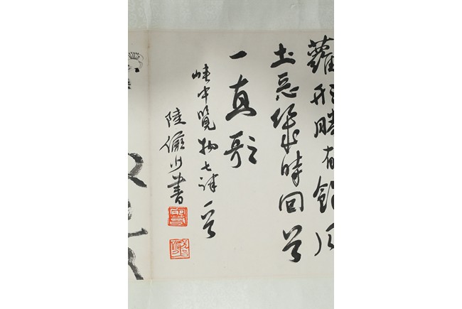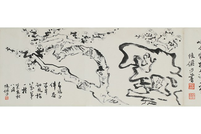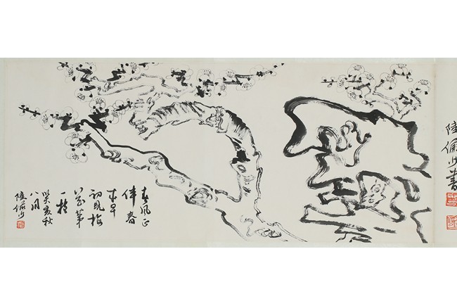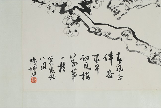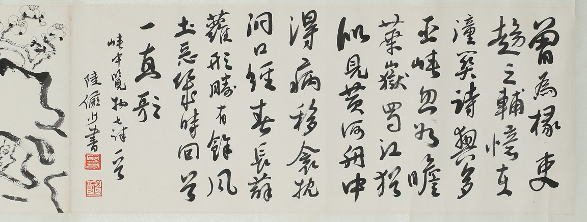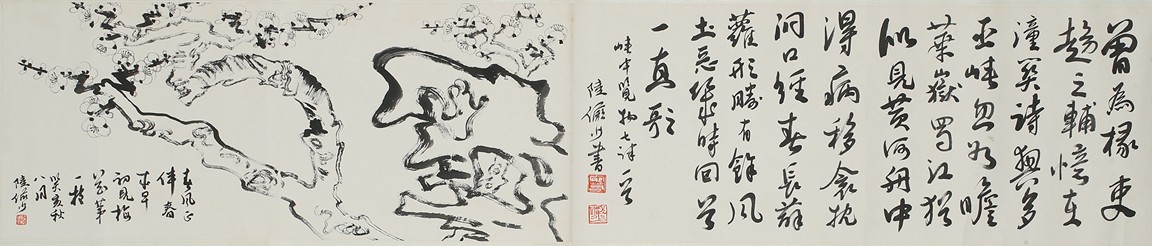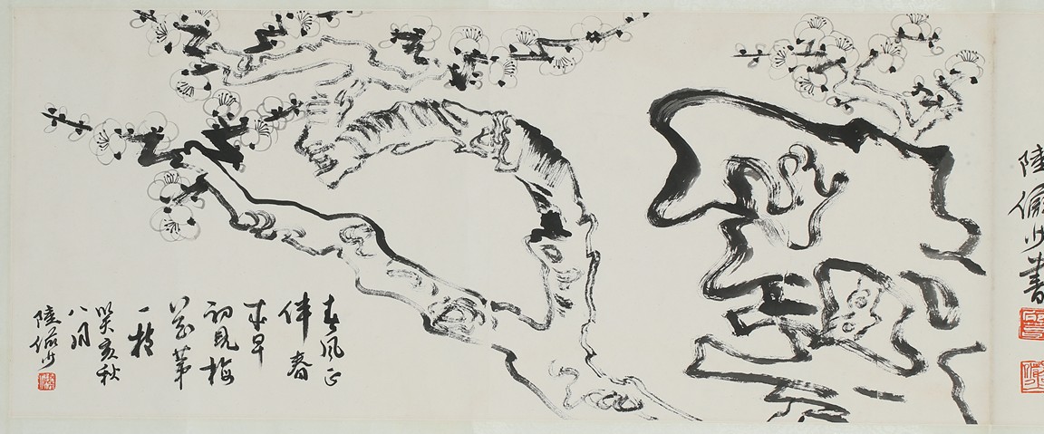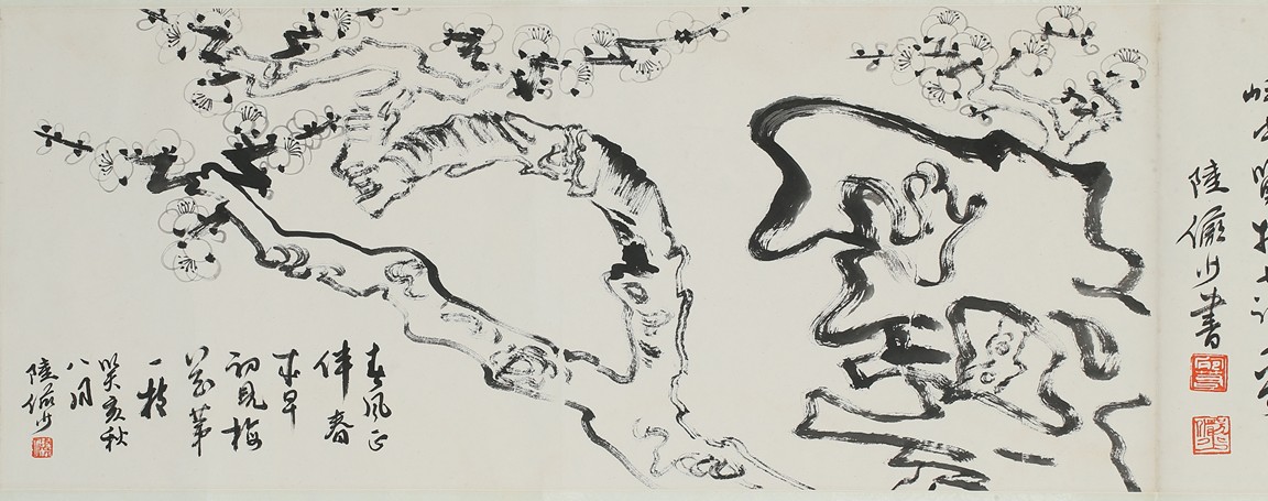 Ink on paper 'plum blossom' and 'running script' calligraphy. Inscribed and signed Lu Yanshao, with three seals of the artist.