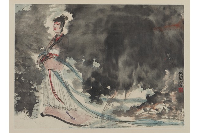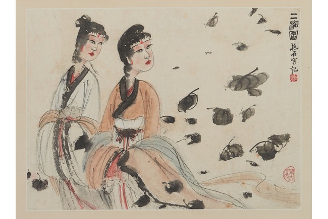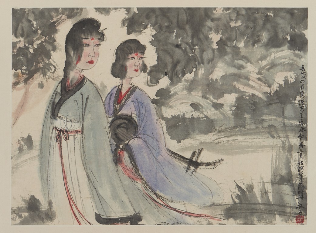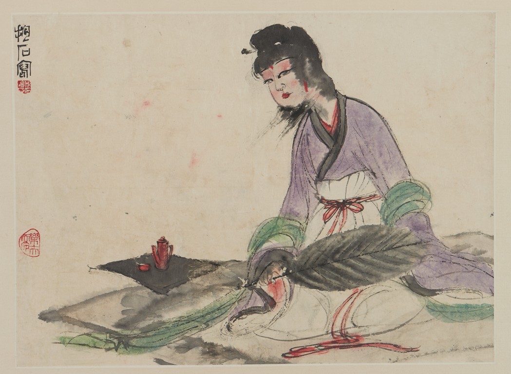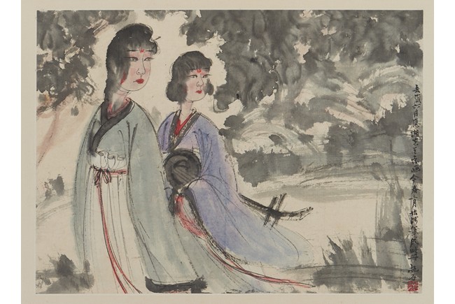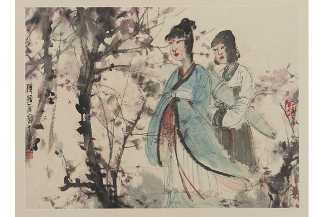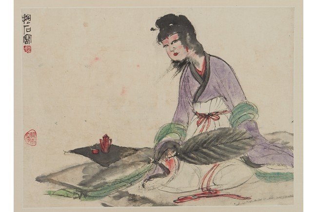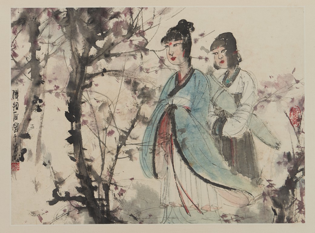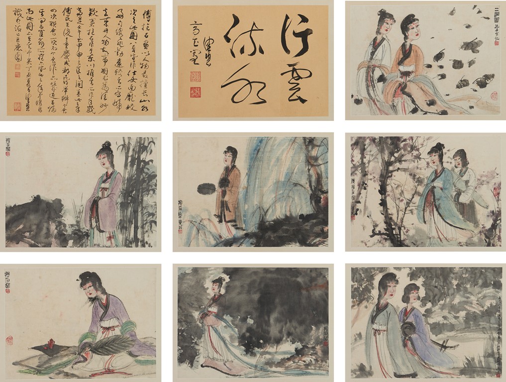 Color and ink on paper. Figures. Seven leaves of painting and two leaves of calligraphy. Signed Fu Baoshi and Baoshi, each leave with one to three seal marks.