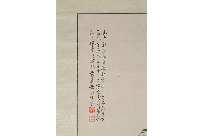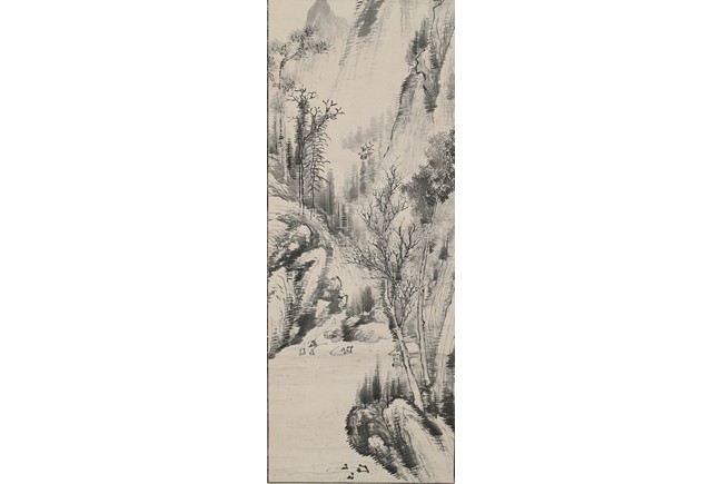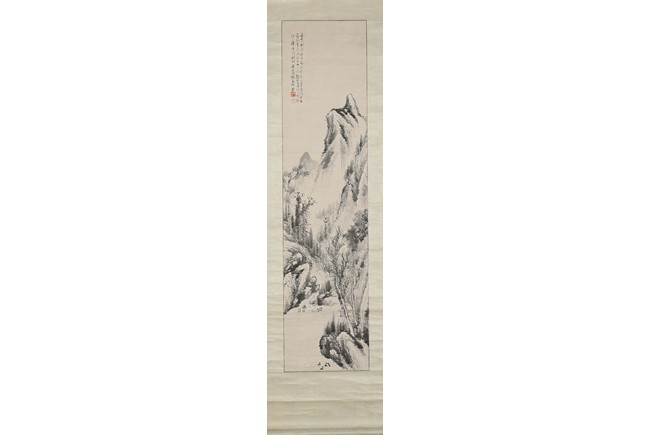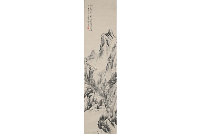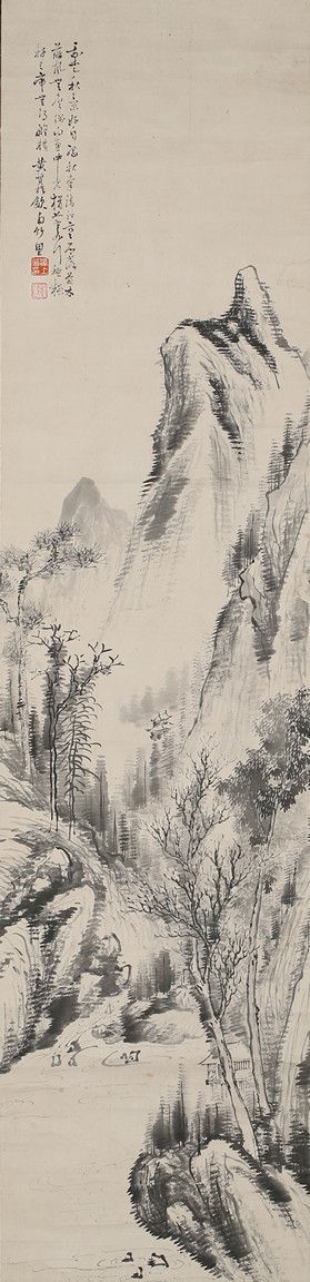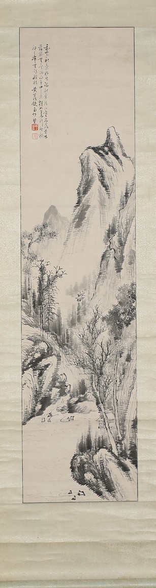 Ink on paper. Landscape. Hanging scroll, inscribed and signed Huang Zhi, with two seals of the artist.