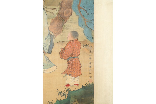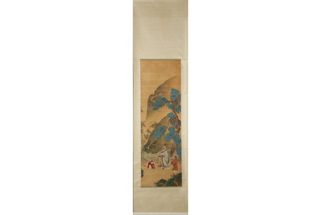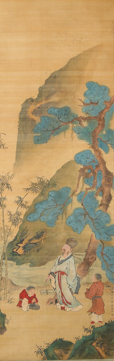 SUN KEHONG: COLOR AND INK ON SILK 'FIGURES' PAINTING 孫克弘 人物 松竹圖 設色絹本 立軸