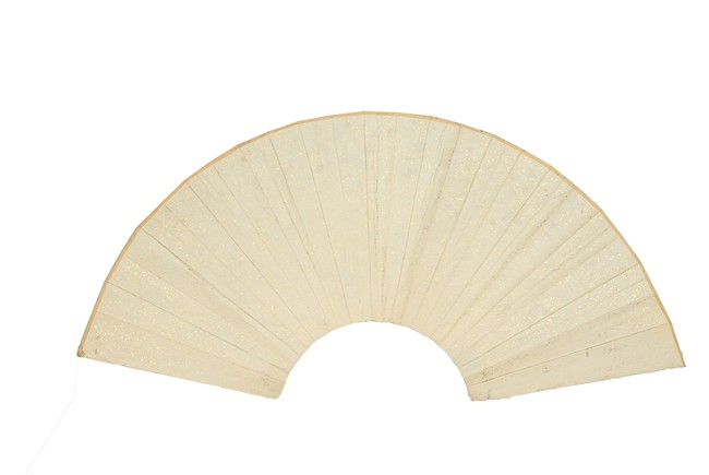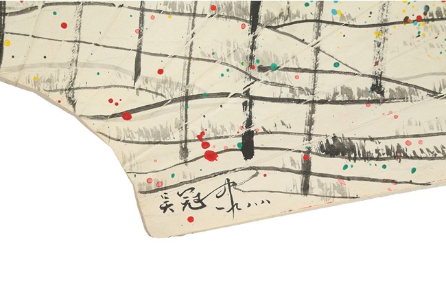 Color and ink on paper. Landscape. Fan Painting. Signed Wu Guanzhong and dated to 1988.