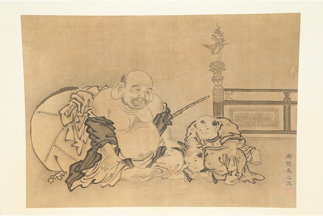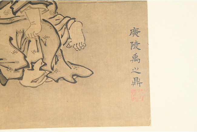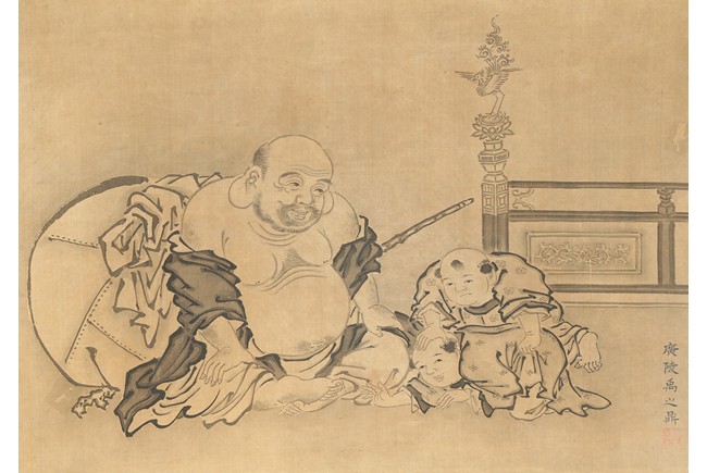 YU ZHIDING: INK ON SILK 'FIGURES' PAINTING 禹之鼎 布袋和尚圖 水墨絹本