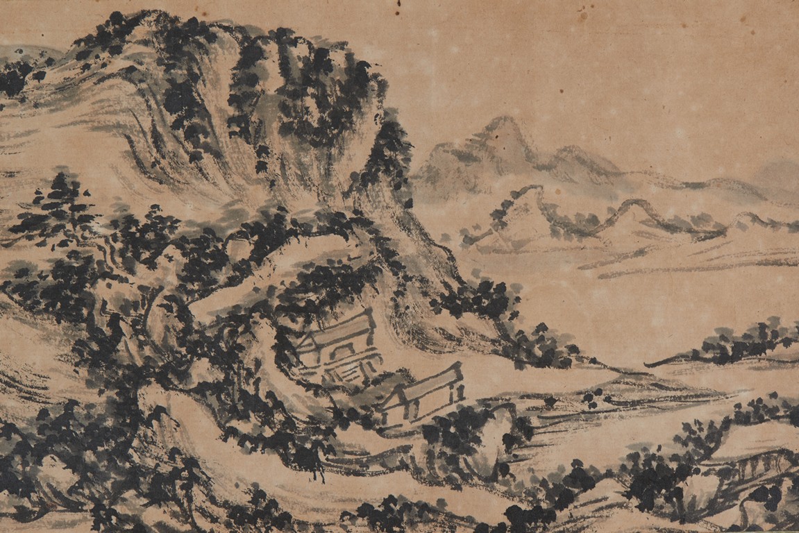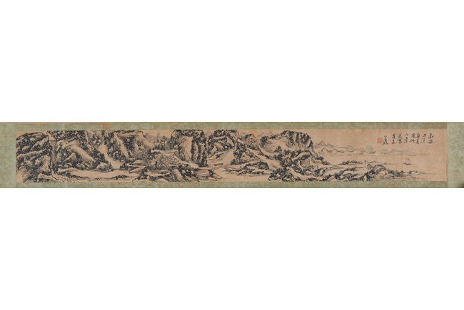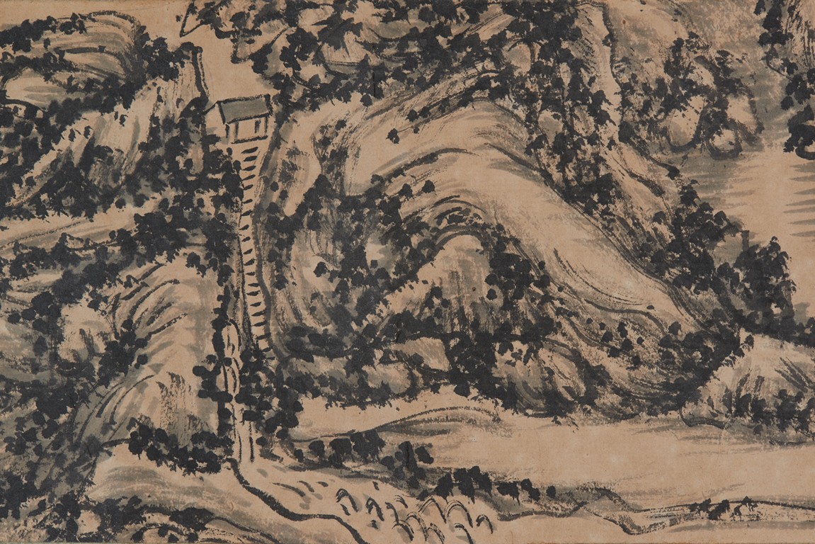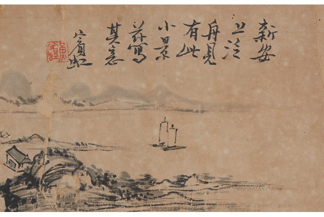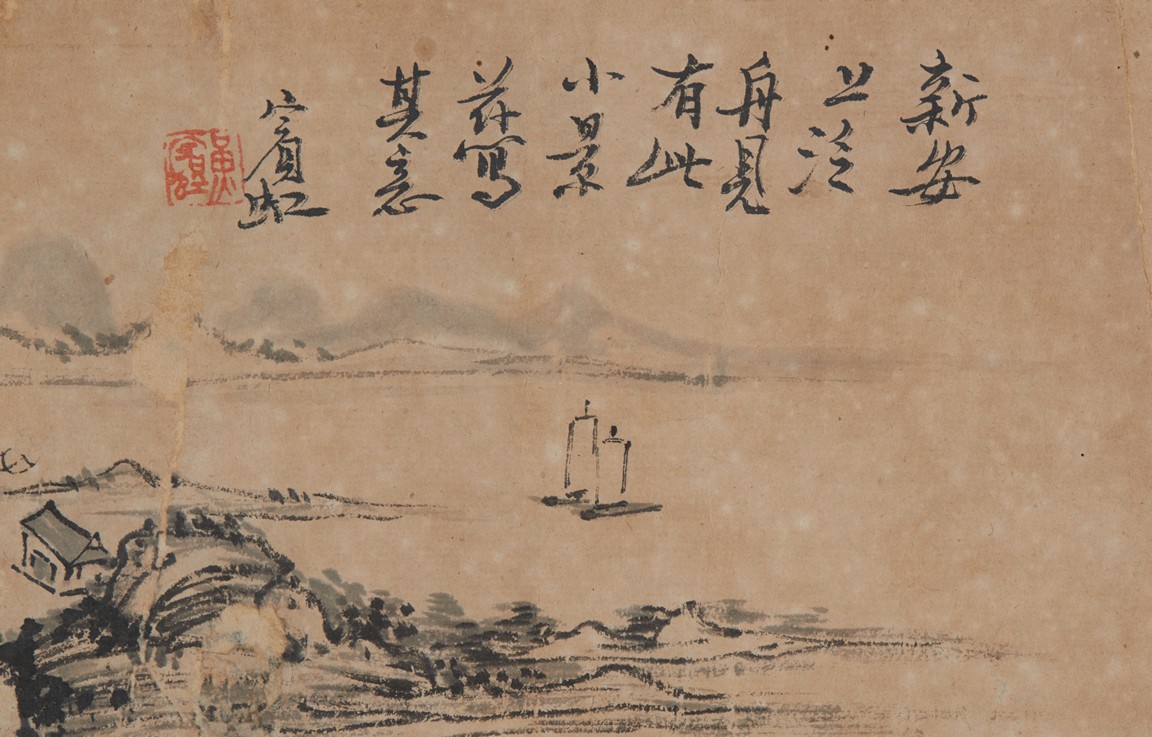 Ink on paper. Landscape on Xin'an River. Inscribed and signed Binhong with one seal of the artist.