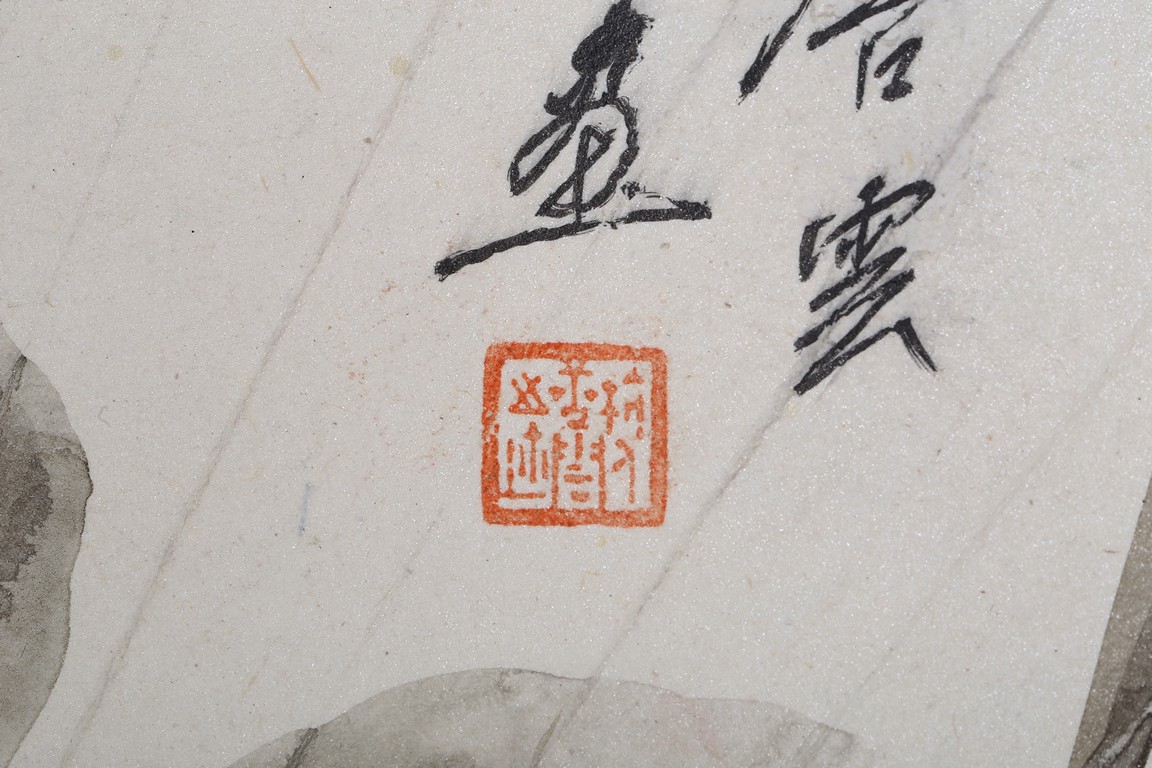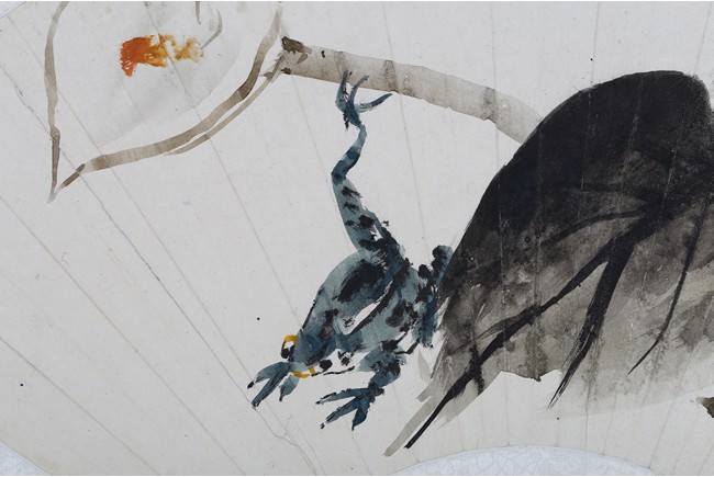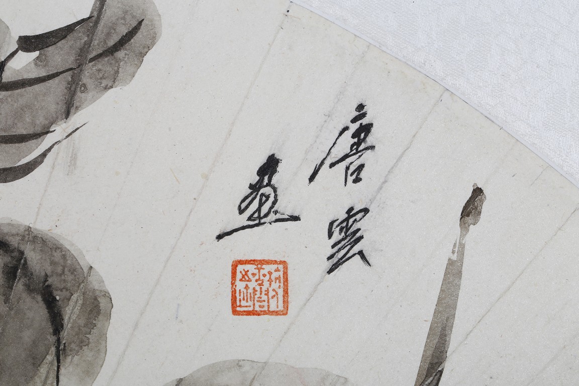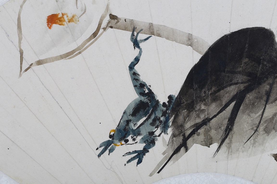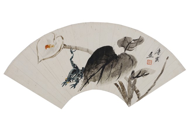 TANG YUN: COLOR AND INK 'FROG' PAINTING 唐雲 青蛙荷花 設色紙本 扇面
