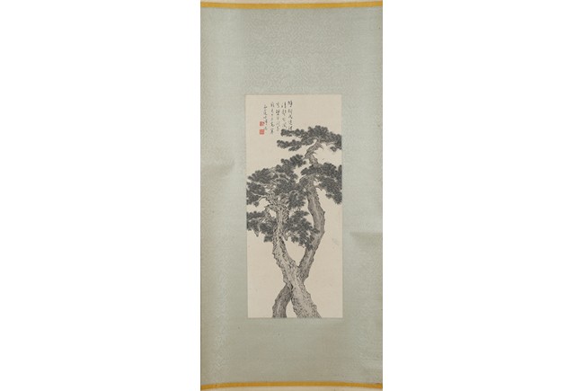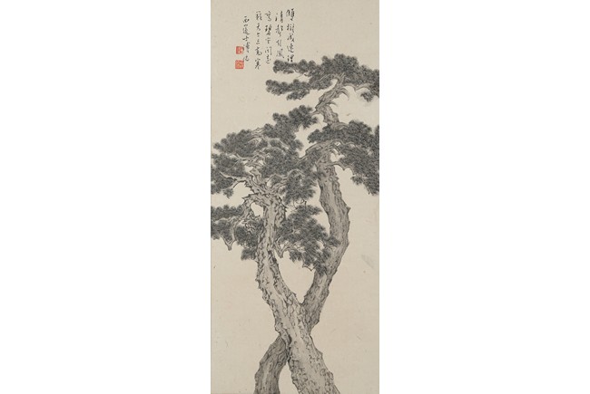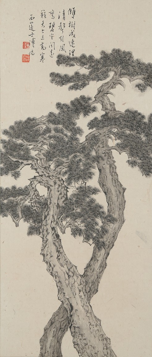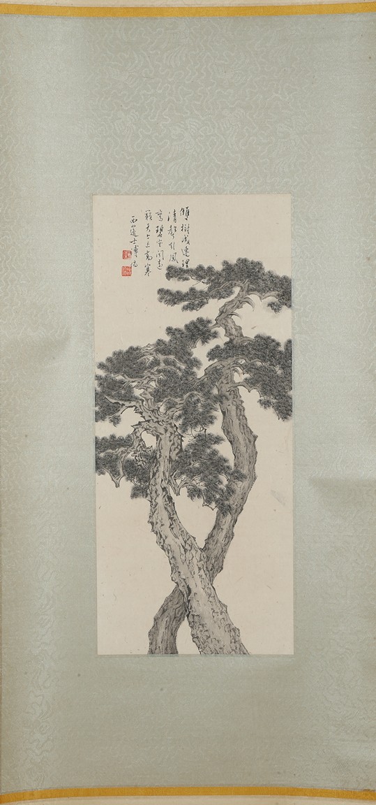 Color and ink on paper. Pine tree. Hanging scroll. Inscribed and signed Pu Ru, with two seals of the artist.